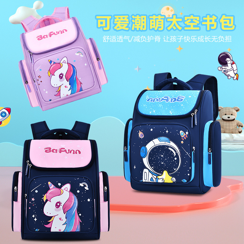 冰箱式梦幻彩虹织带小学生书包轻便护脊大容量儿童书包一至六年级