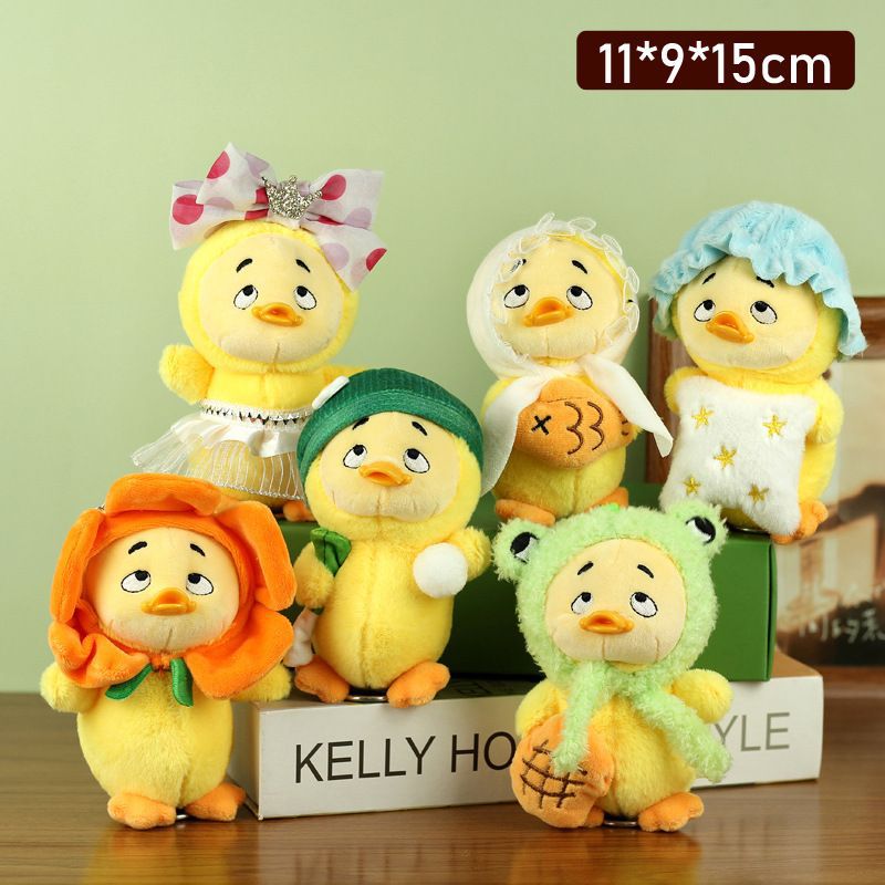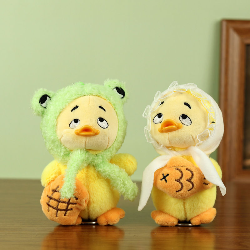 仕事が面倒だね、かわいい動物のぬいぐるみキーホルダー、バッグ飾り、ミニチュア人形、いたずらっ子アヒル