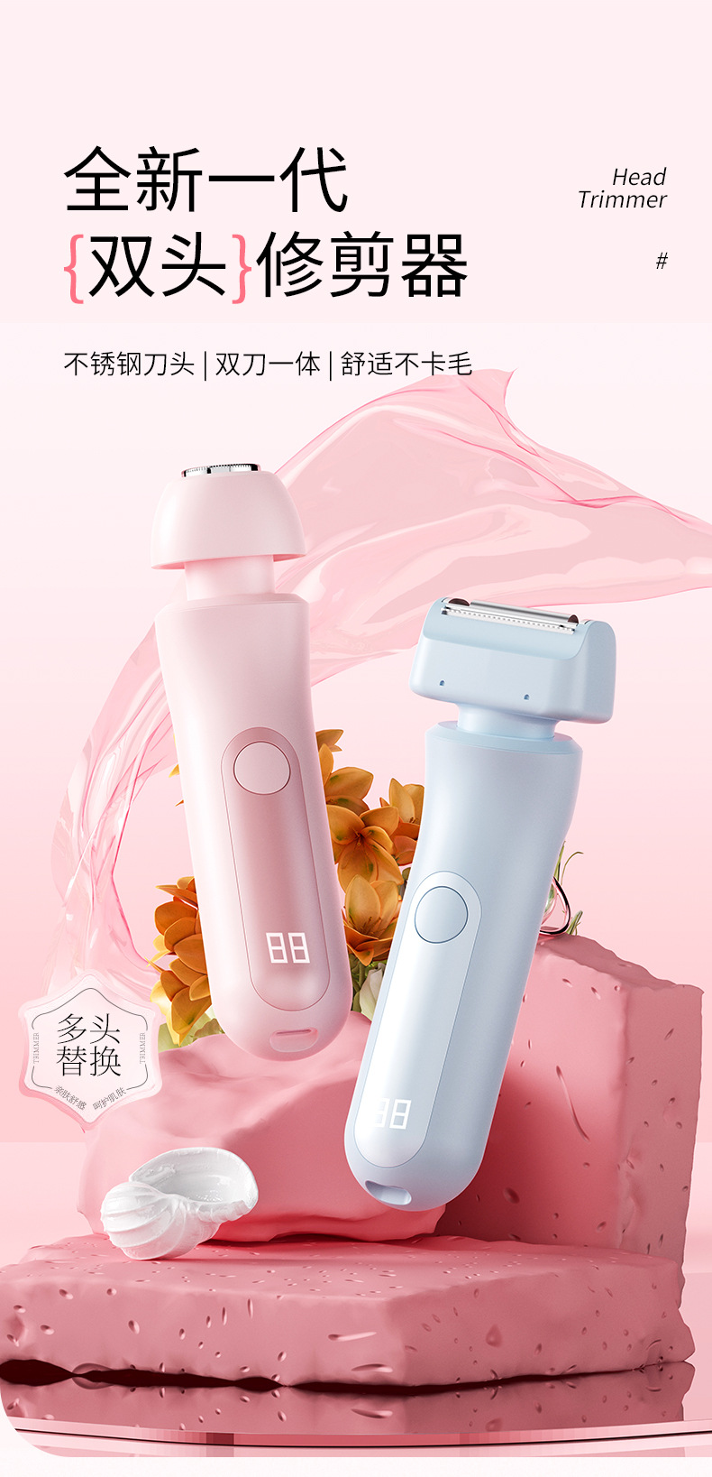 女性用クロスボーダー双頭シェーバー、陰部陰毛トリマー、電気シェーバー、全身脱毛器