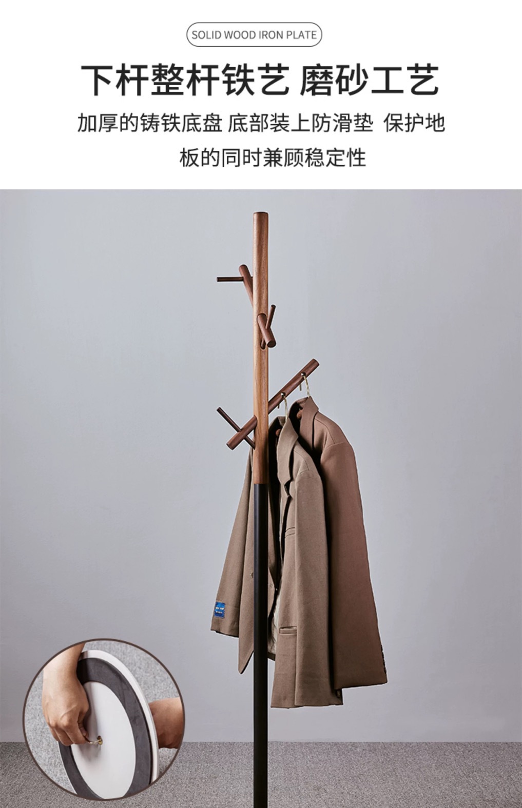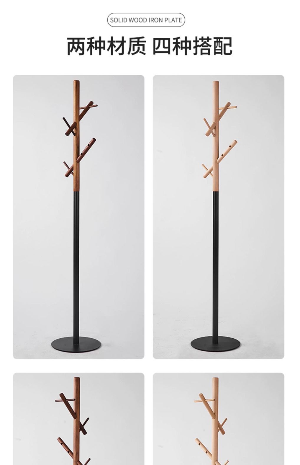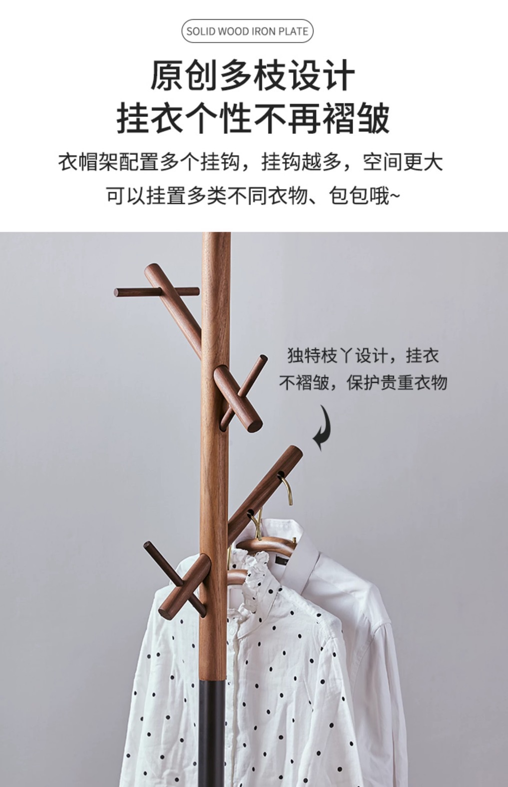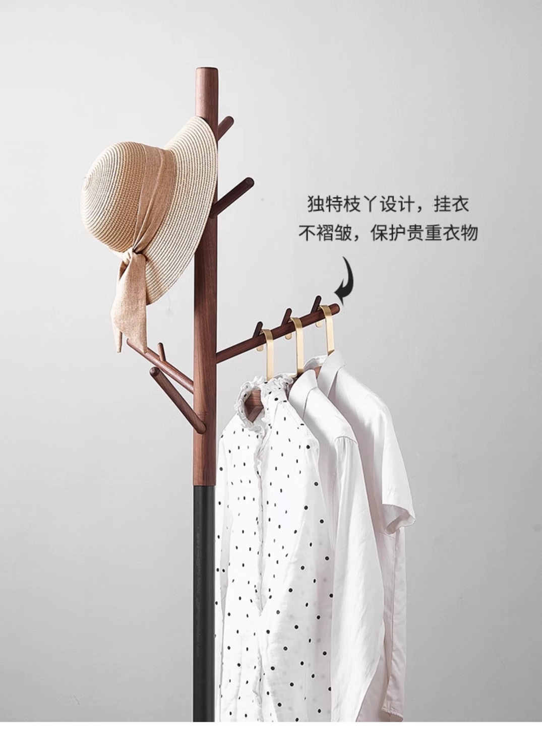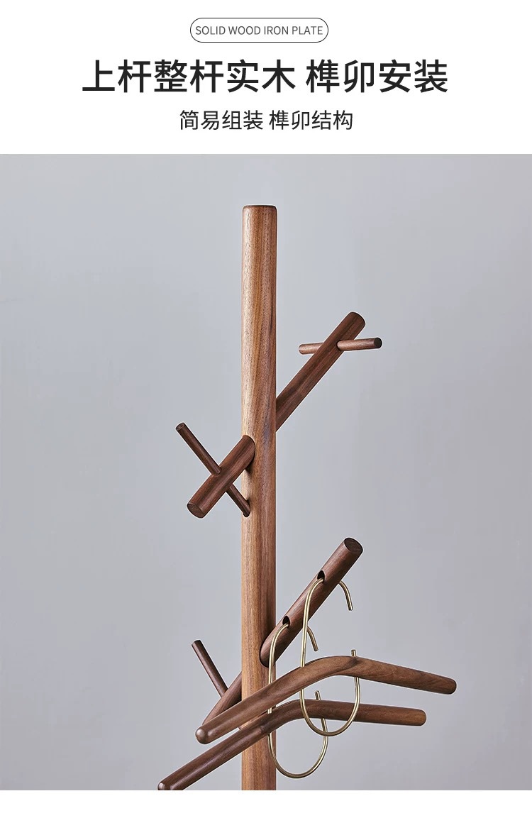 ブラックウォールナットフロアスタンドツリー型コートラック洋服ラックリビングルームベッドルームエントリーシンプルなシンプルな洋服バッグラック