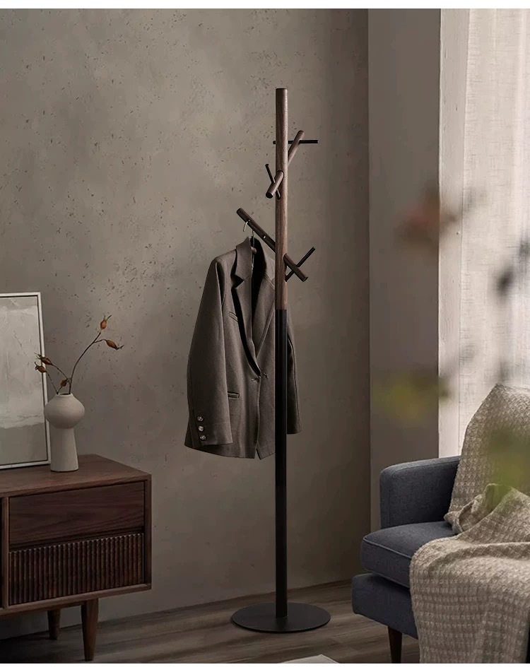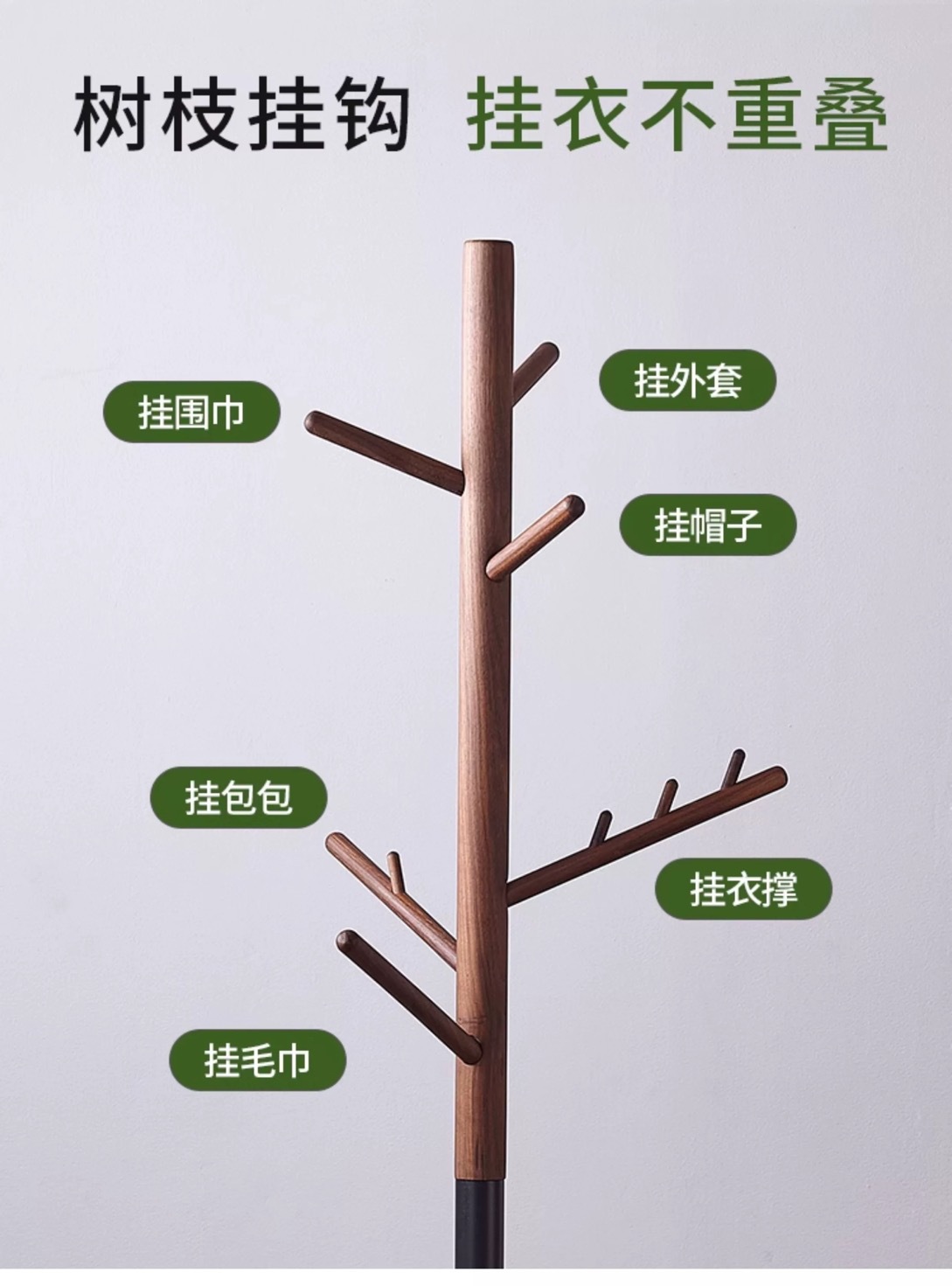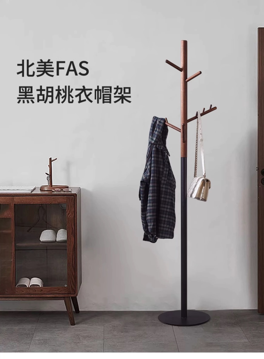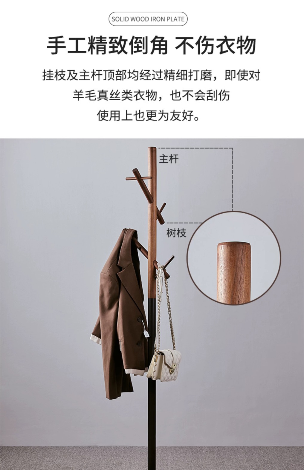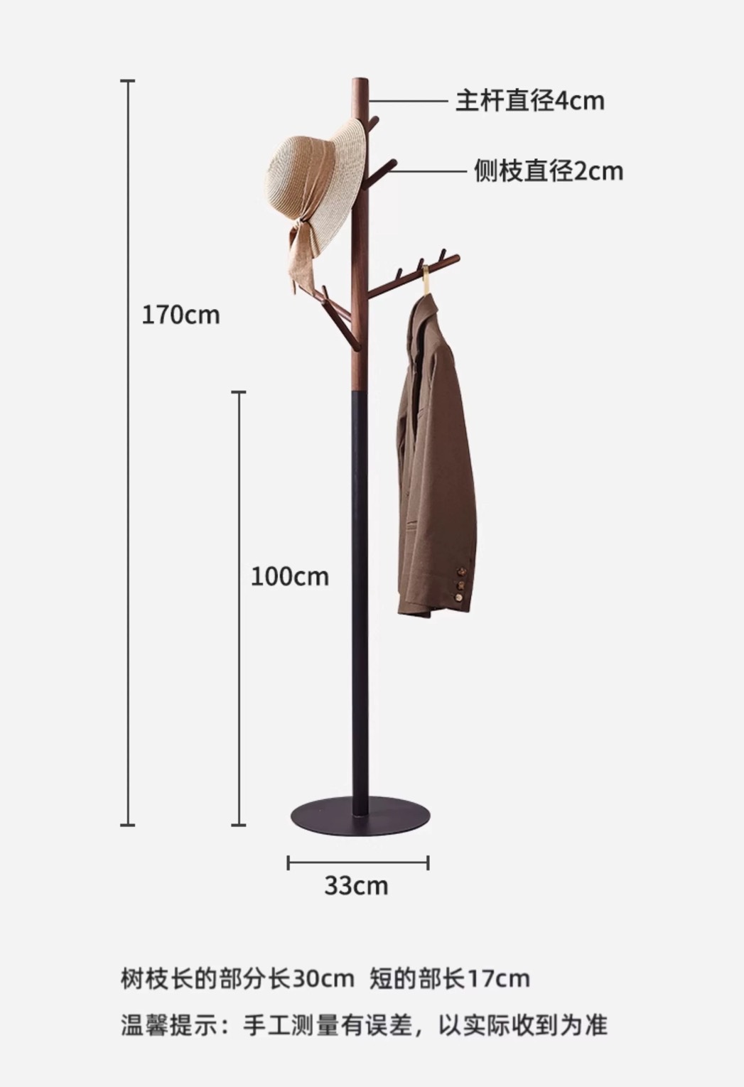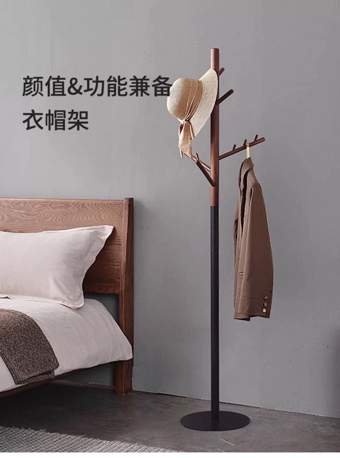 ブラックウォールナットフロアスタンドツリー型コートラック洋服ラックリビングルームベッドルームエントリーシンプルなシンプルな洋服バッグラック