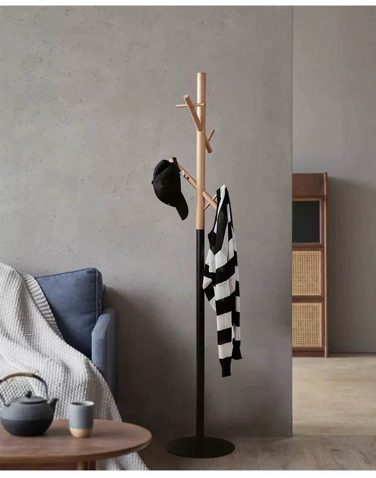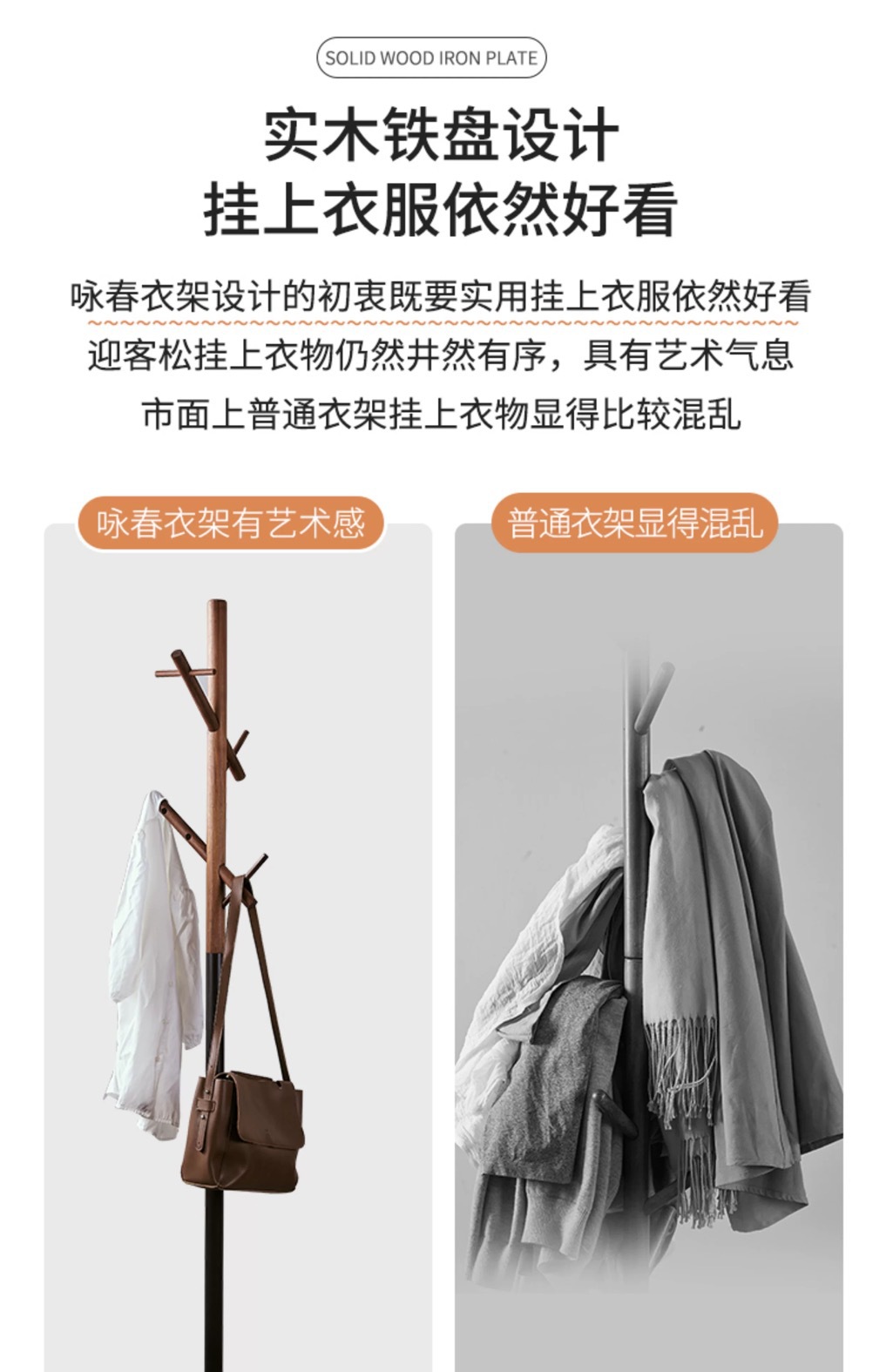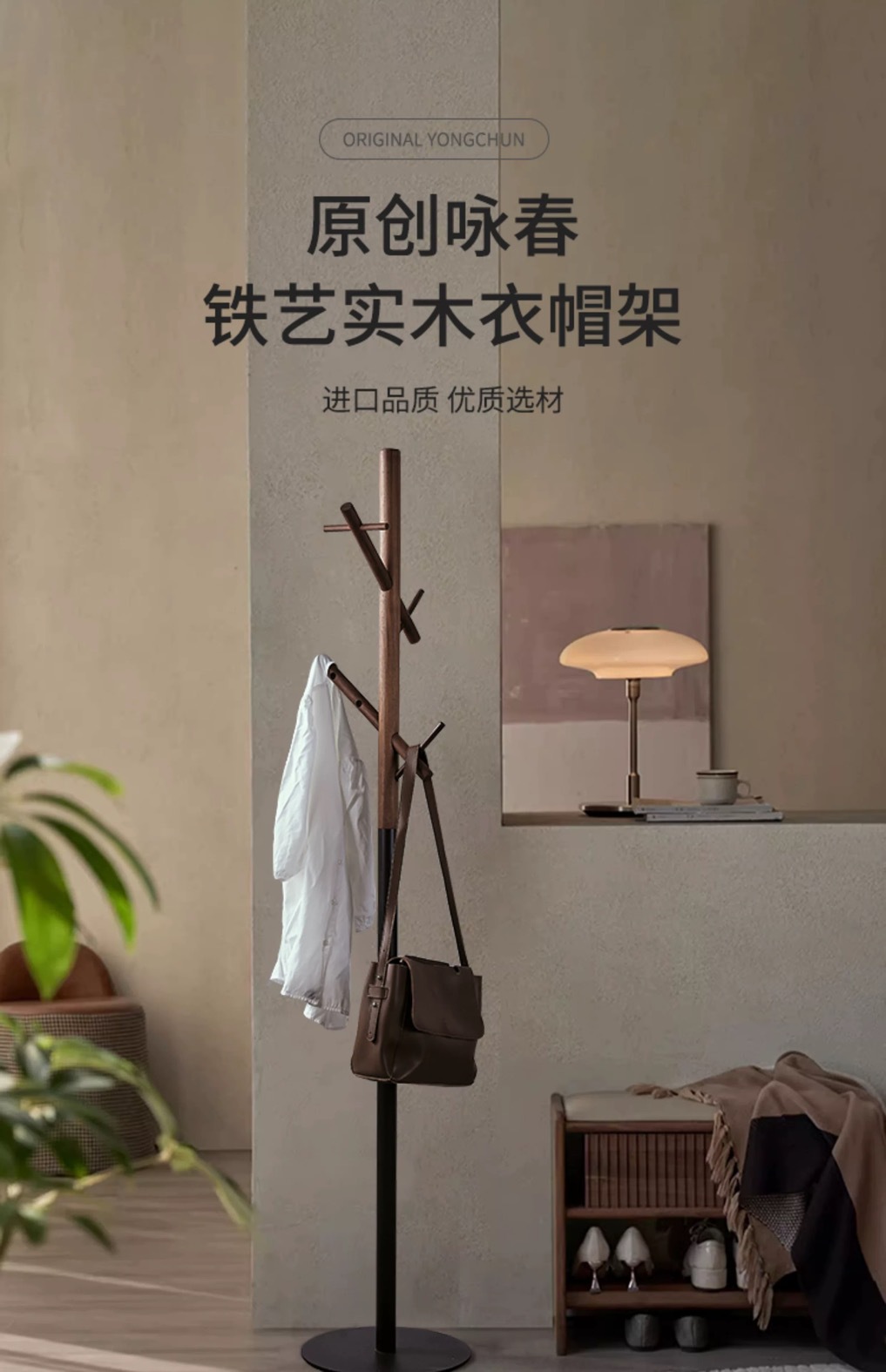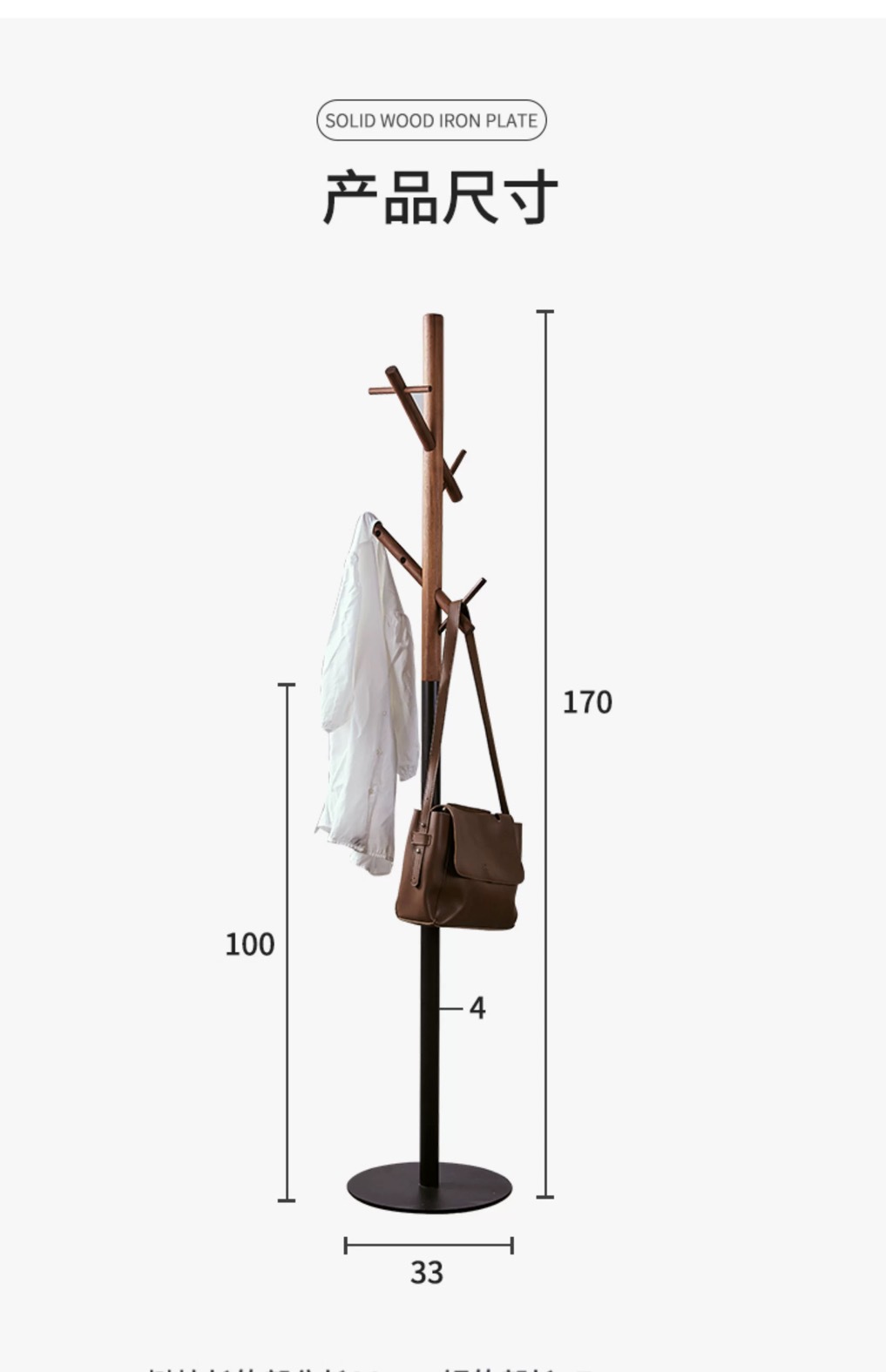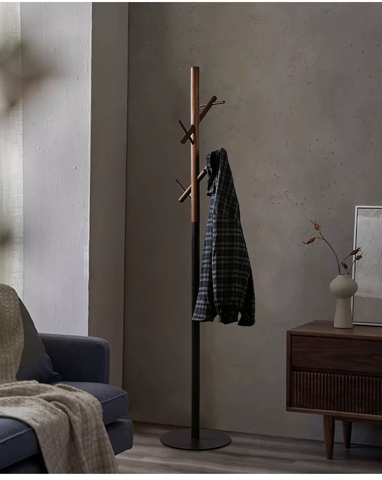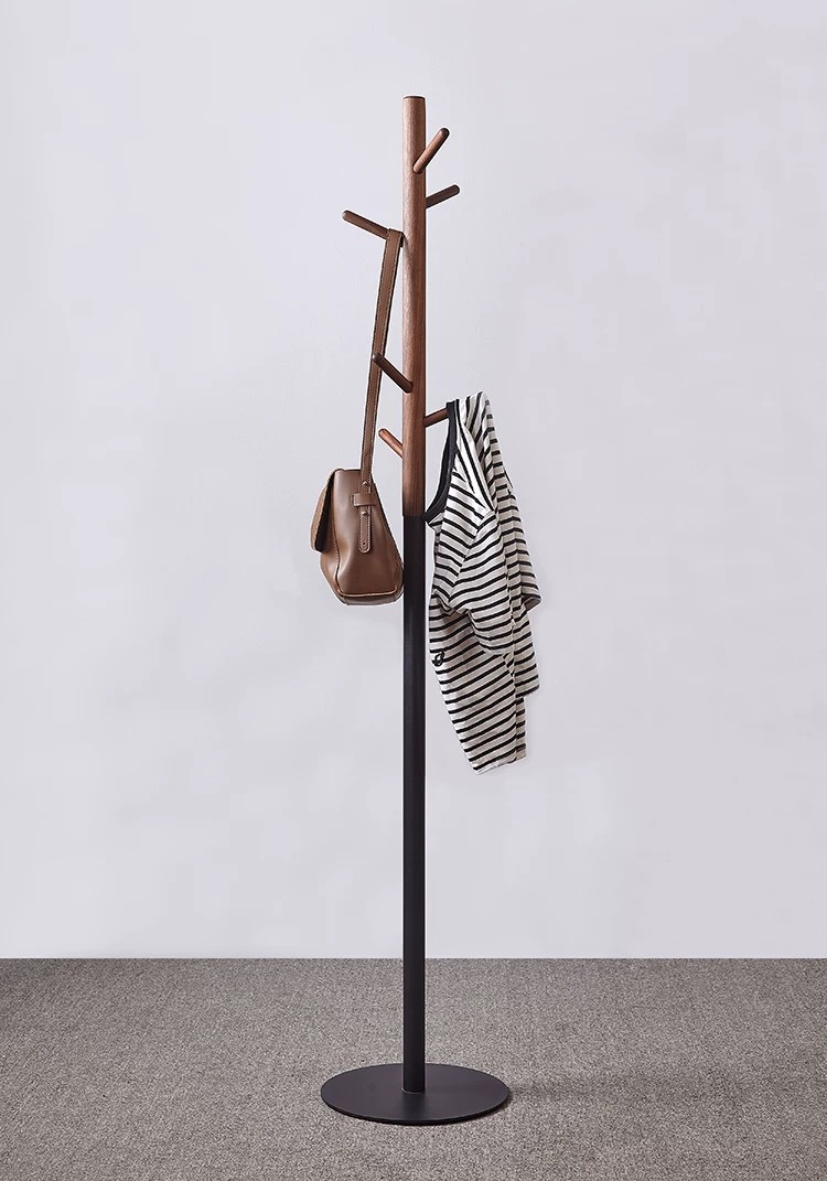 ブラックウォールナットフロアスタンドツリー型コートラック洋服ラックリビングルームベッドルームエントリーシンプルなシンプルな洋服バッグラック