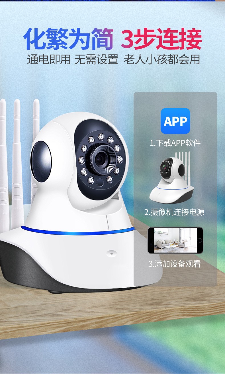 V380首振り機WiFiカメラ高精細双方向音声無線夜視クロスボーダー爆金三アンテナ室内
