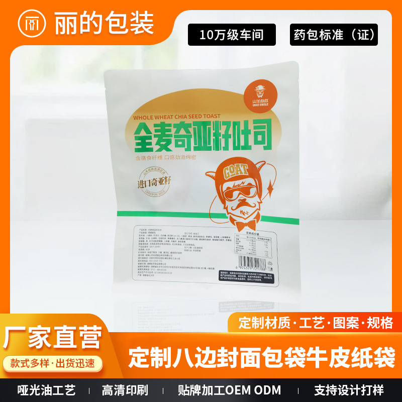 カスタマイズされた 8 面トーストパンベーキング包装クラフトティッシュペーパーバッグトーストパン包装袋食品袋