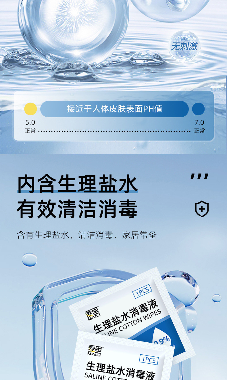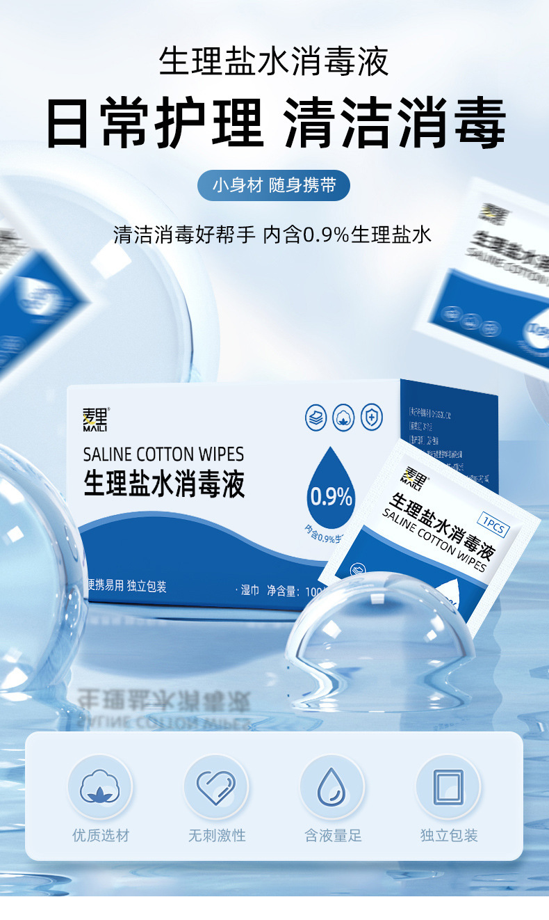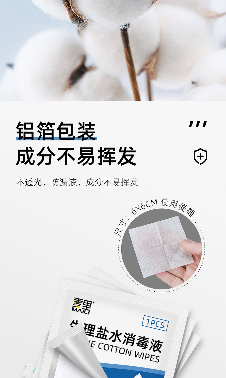 麦里生理食塩水綿片0.9%抗菌液ニキビ洗浄フェイシャル美容ケアウェットティッシュメーカー卸売