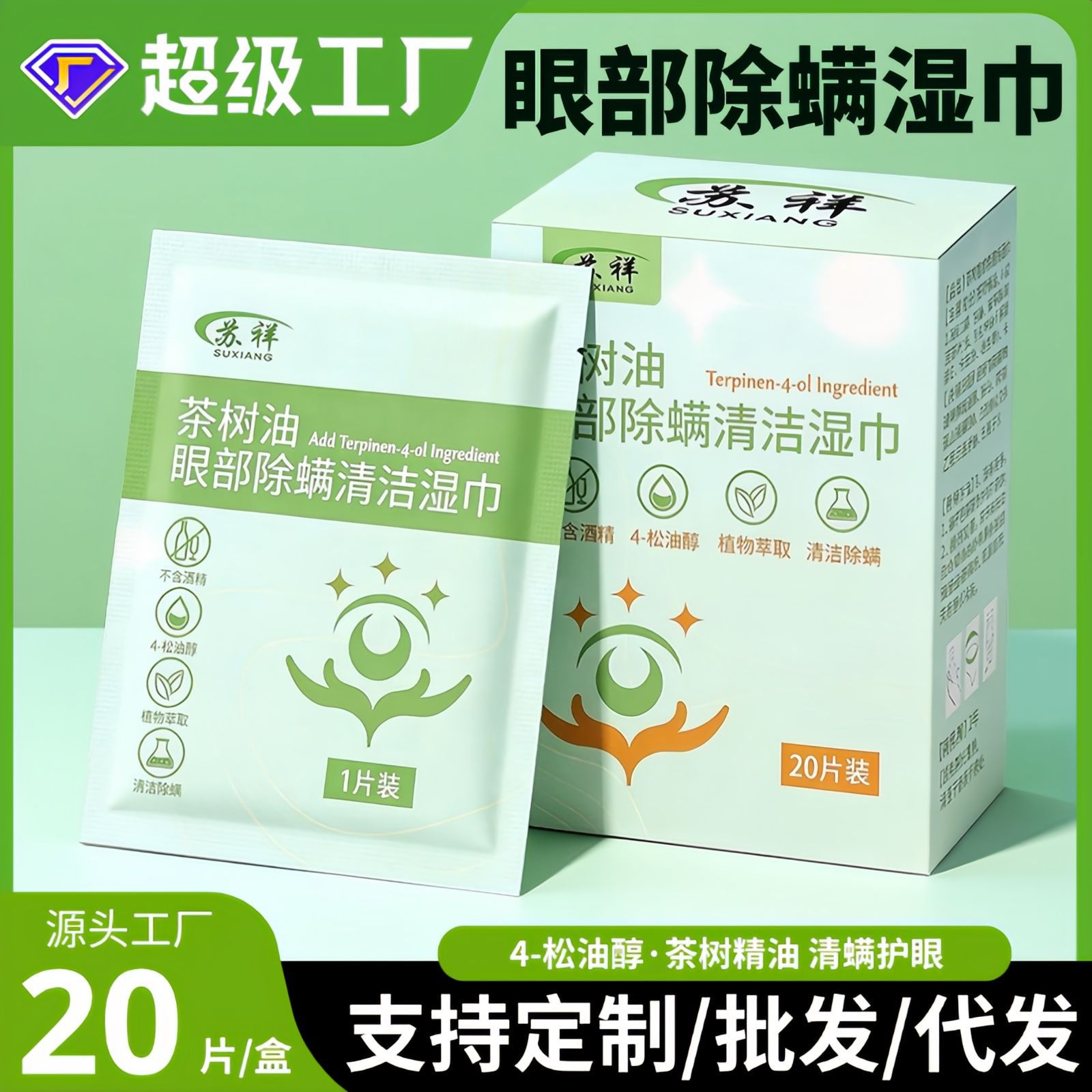 使い捨てティーツリーエッセンシャルオイルコットンシートまぶたダニ除去抗菌クリーニングワイプ 4-テルピネオールアイダニ除去ウェットワイプ