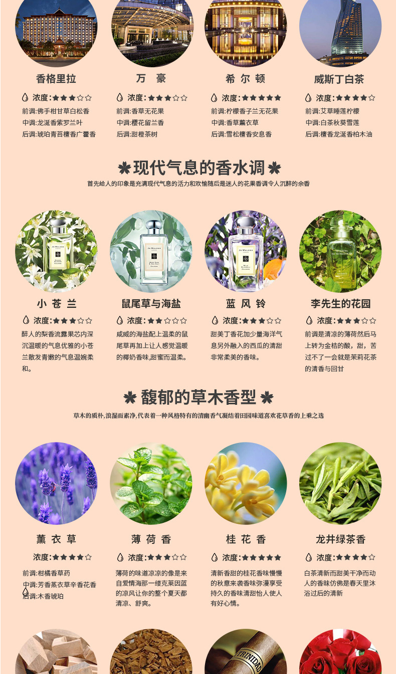 香りの種類 レモン,ウェスティン ホワイト ティー,8月のキンモクセイ,イングリッシュペアー フリージア,青い風鈴,クチナシ,Hilton,SHANGRI-LA,YIJIANG,Moli,Rose,SAKURA,Ocean,ラベンダー,リリー,バイオレット