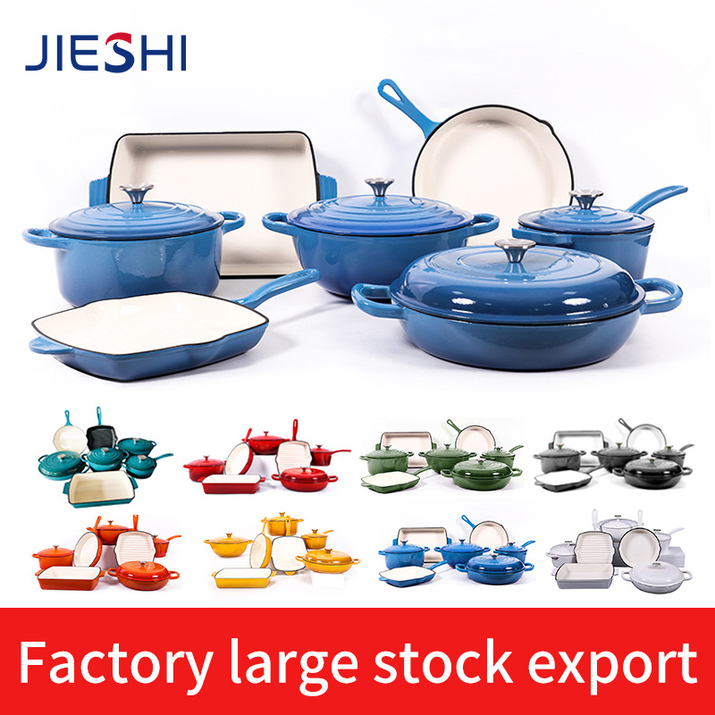 輸出鋳鉄エナメル鍋セット7ピースエナメルポットホットポットスチークプレートセット