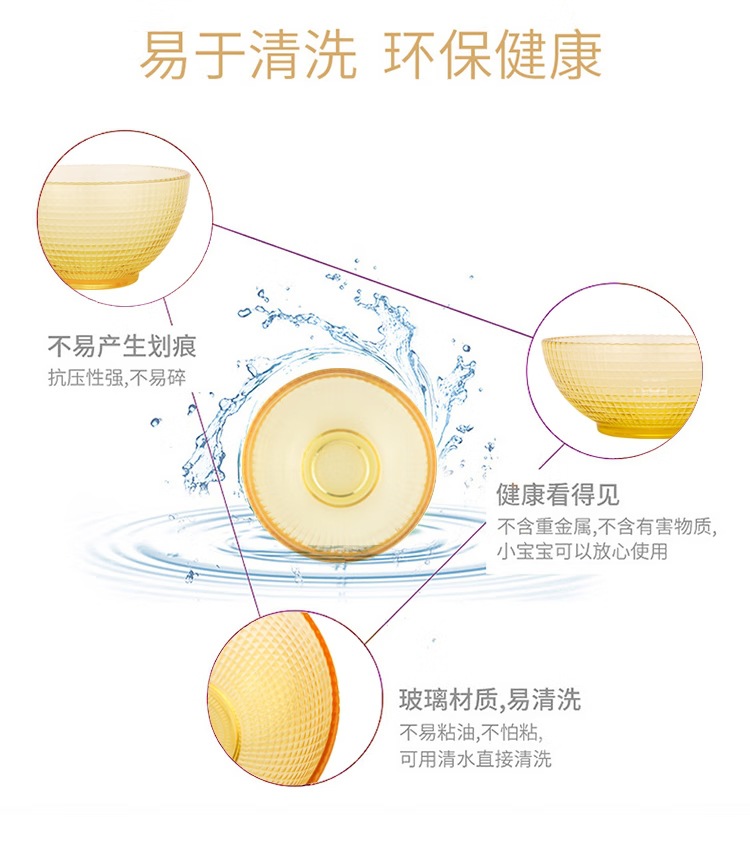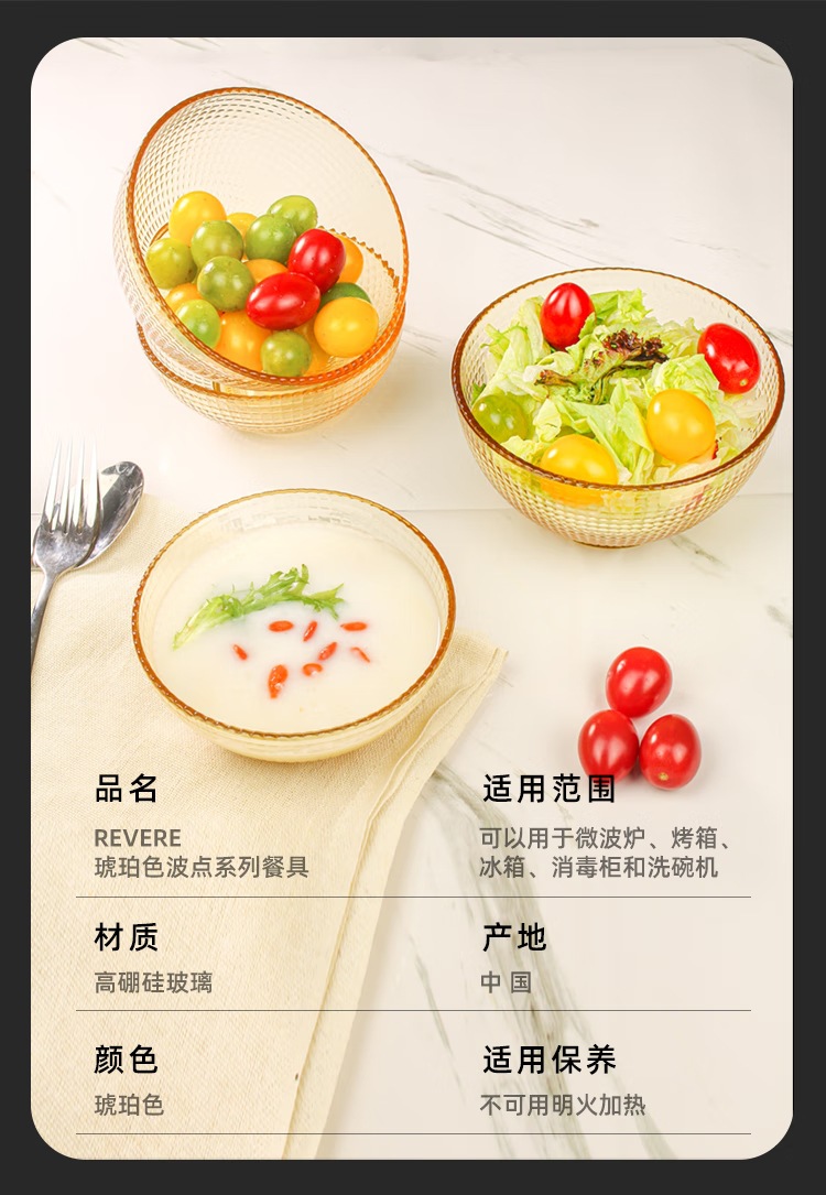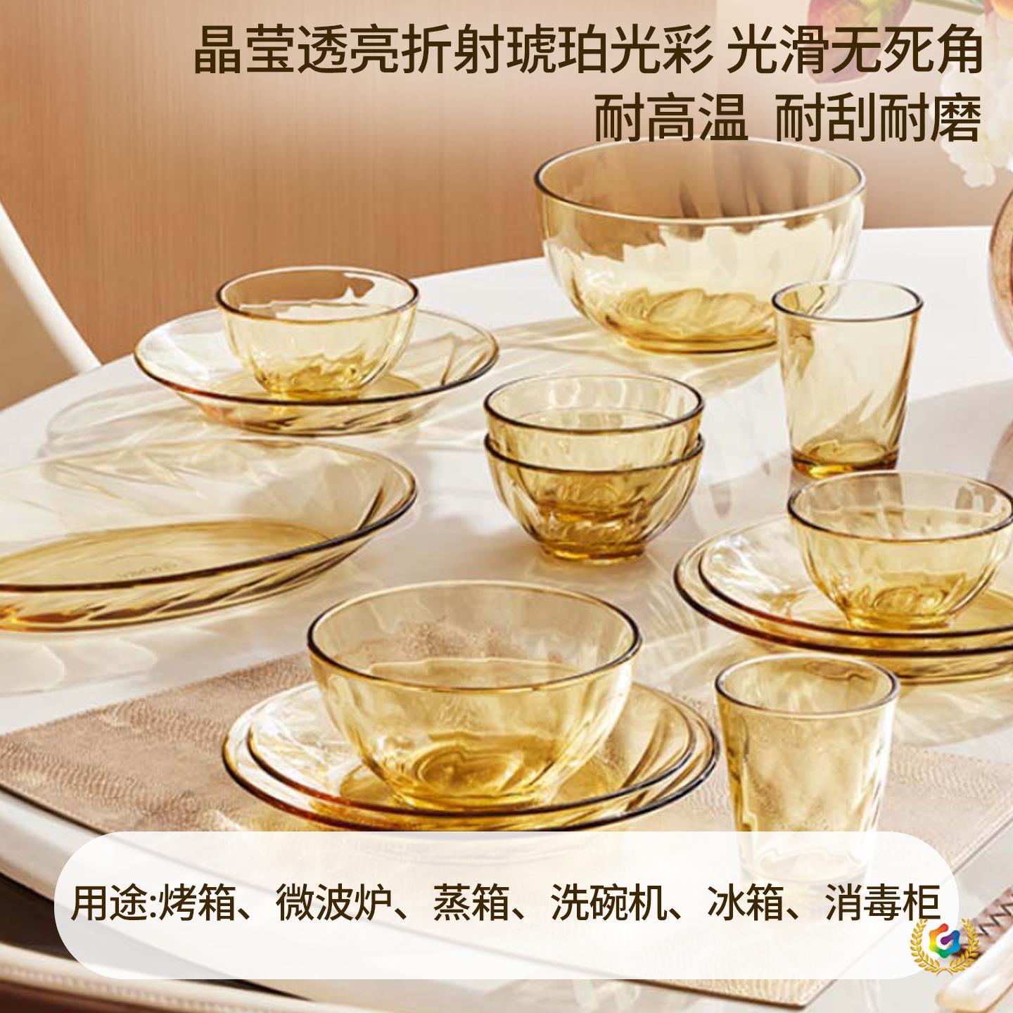 琥珀餐具套装米饭碗面碗汤碗玻璃碗盘碗碟套装耐高温家用大容量