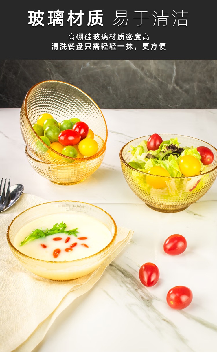 軽豪華家庭用高颜値ガラスボウル食器セット電子レンジ耐熱高ホウケイ酸ガラスサラダボウルスープボウル