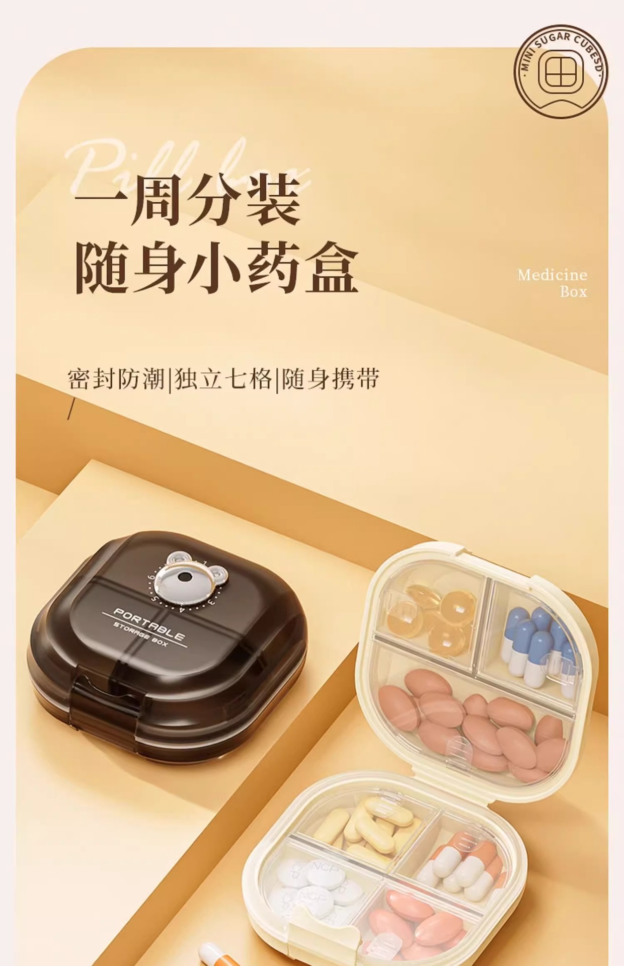 【盒装】分格装便携式药盒外出旅行随身携带迷你药盒密封防尘收纳