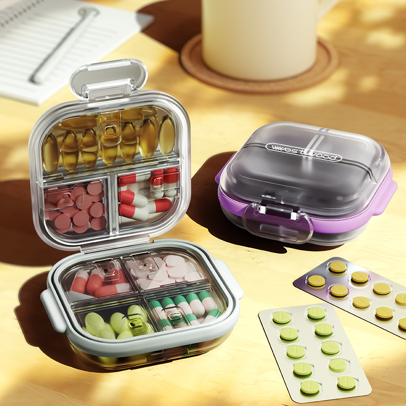 薬の箱の携帯の薬品の分注の箱の小さいサイズの密封の防湿は薬の器のミニの携帯の薬物の分割の神器を切ります。