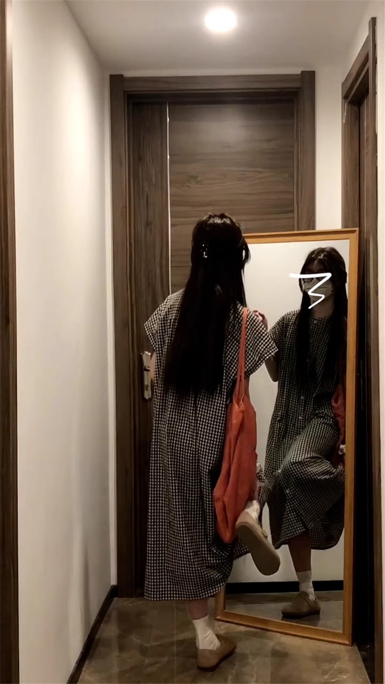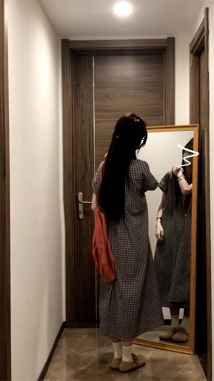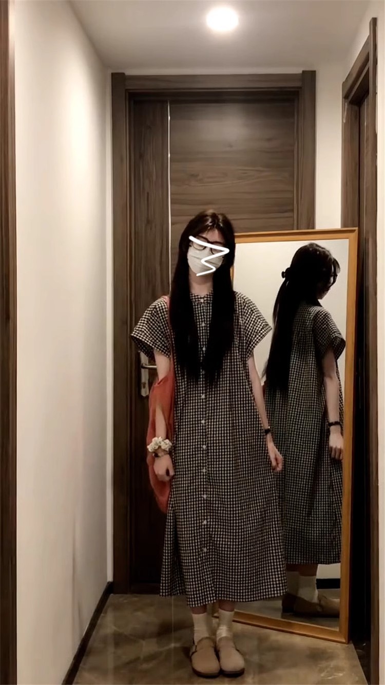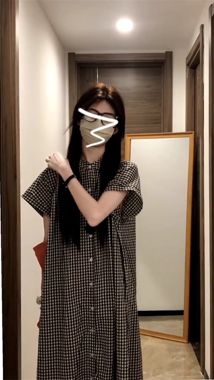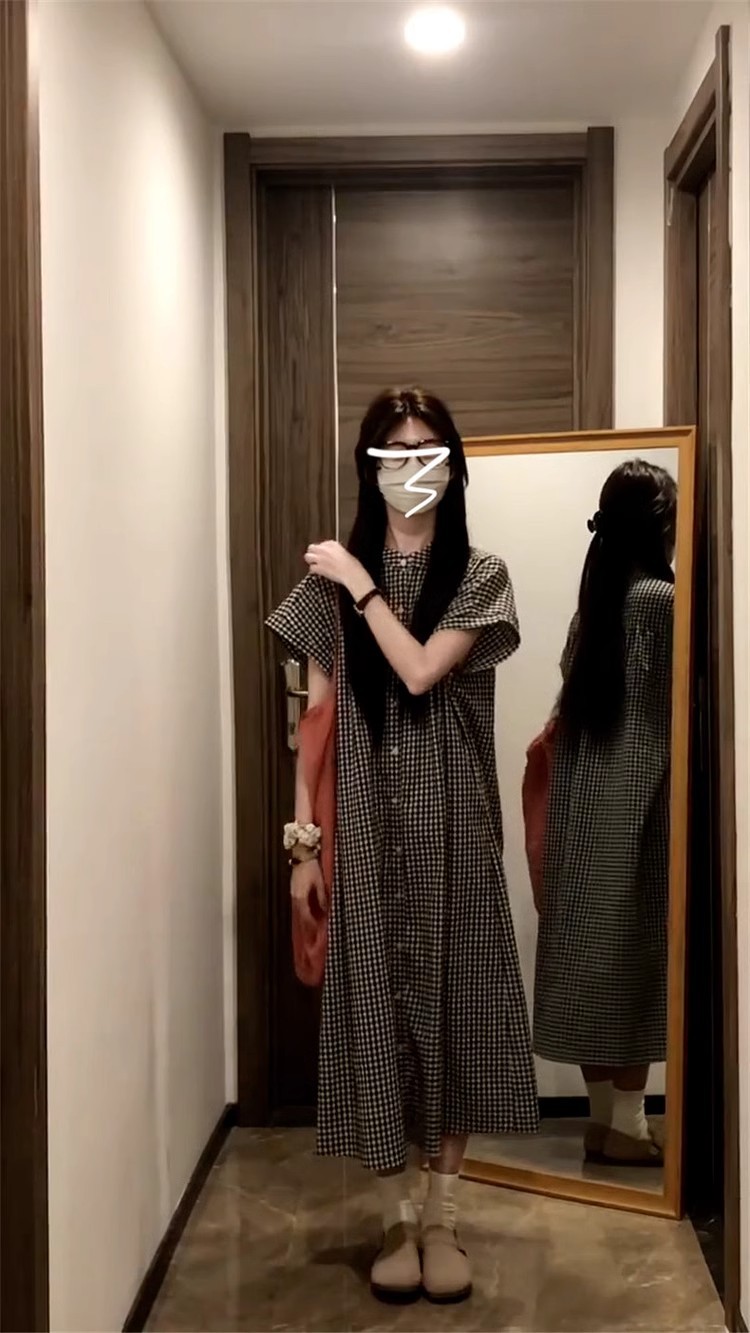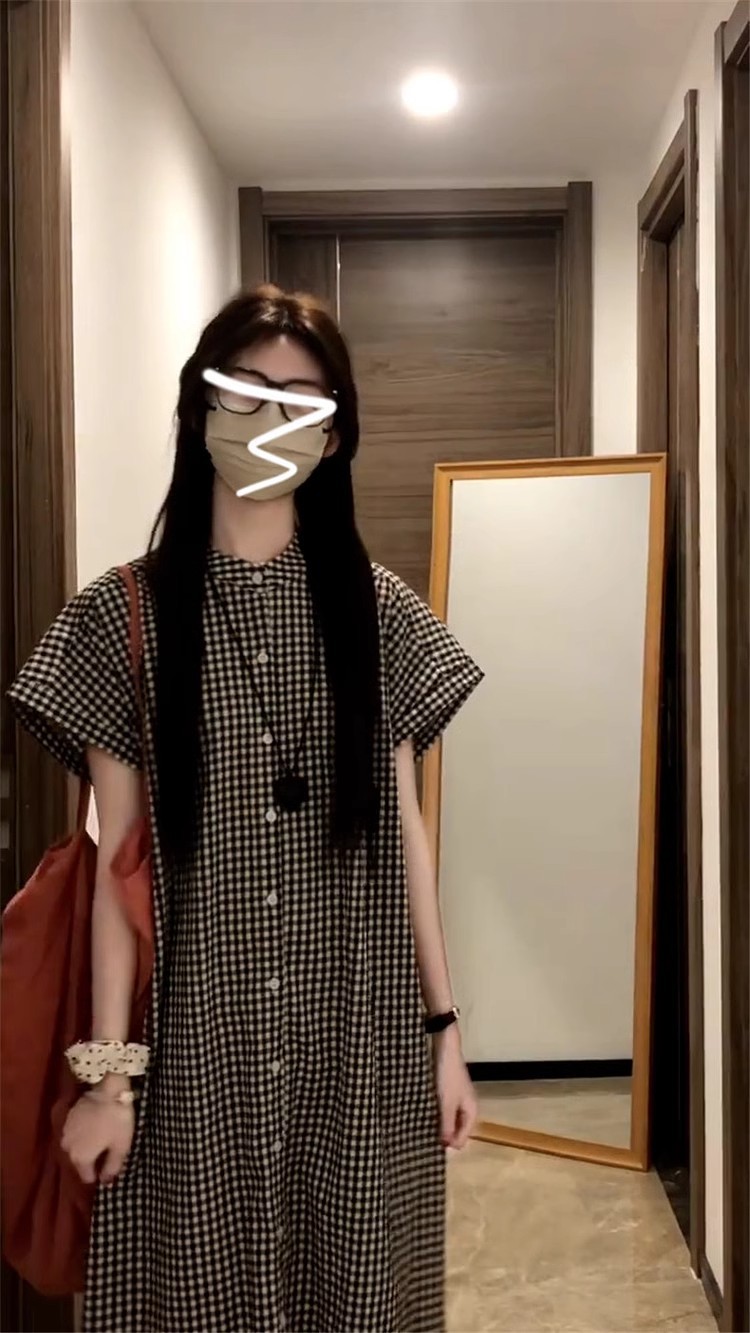 白黒の格子の半袖のワンピースの子供の夏の新型の日本の復古のゆったりしているレジャーはやせているシャツのロングスカートを現します。