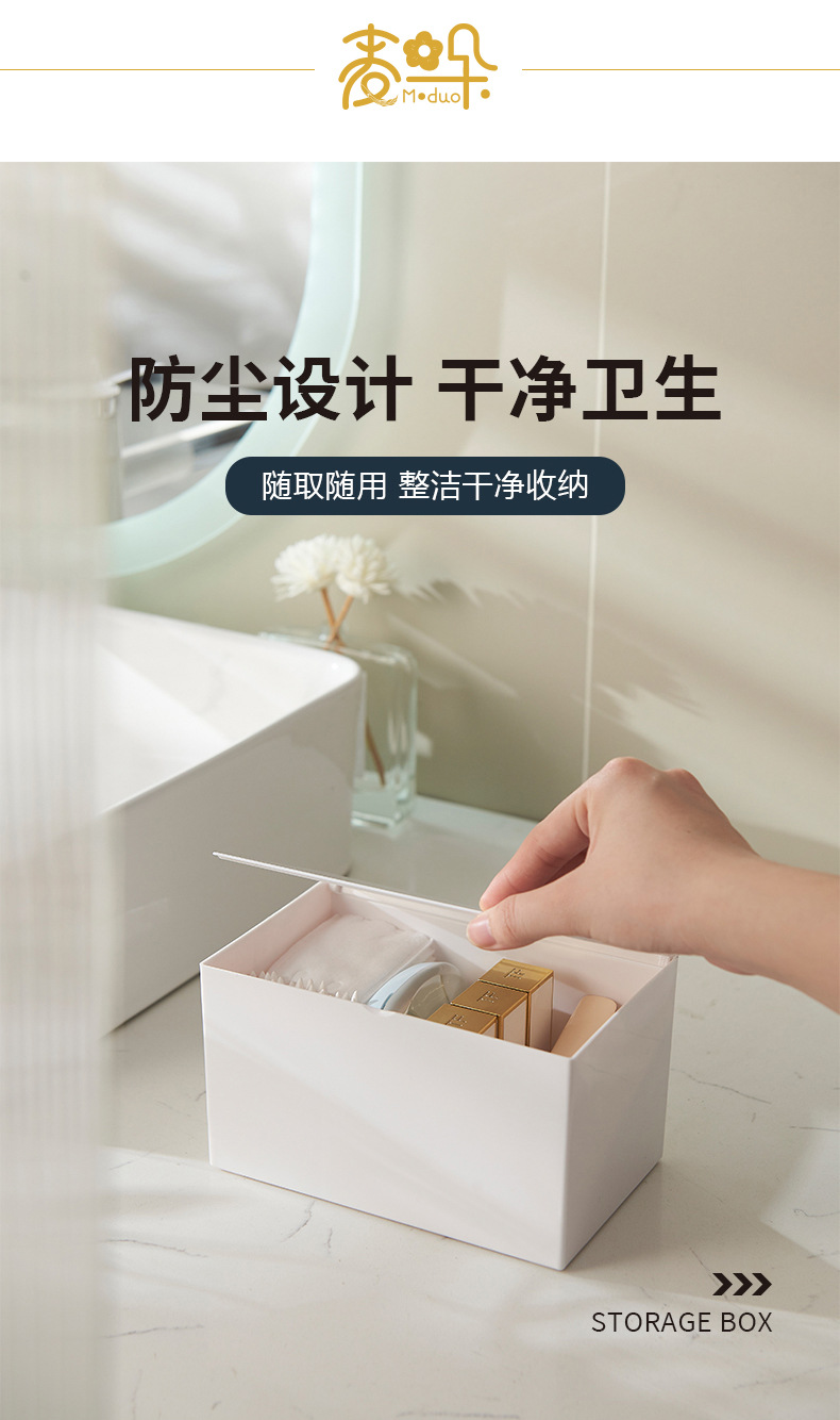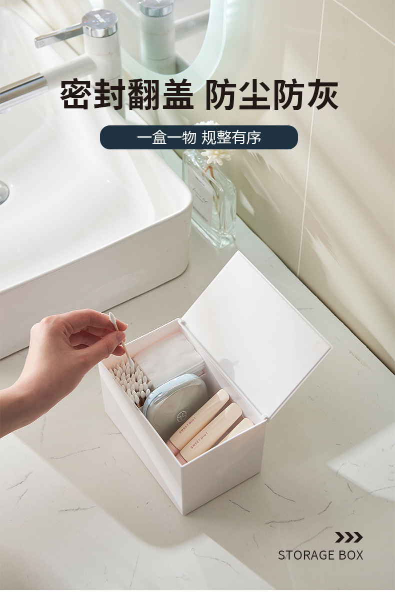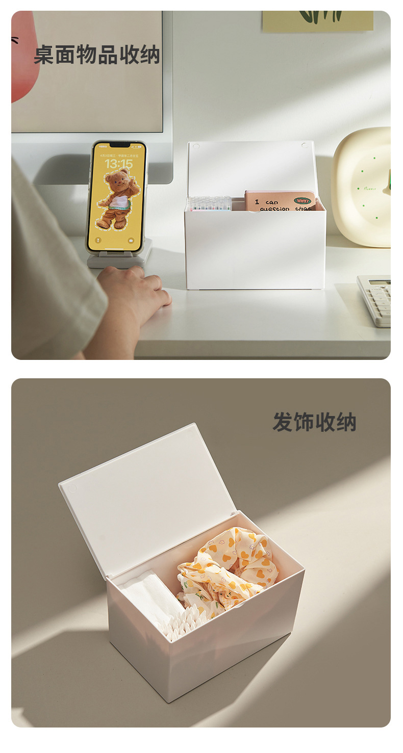 デスクトップ防塵収納ボックスフラップ角型綿棒化粧綿収納ボックス爪切り小物分割整理ボックス