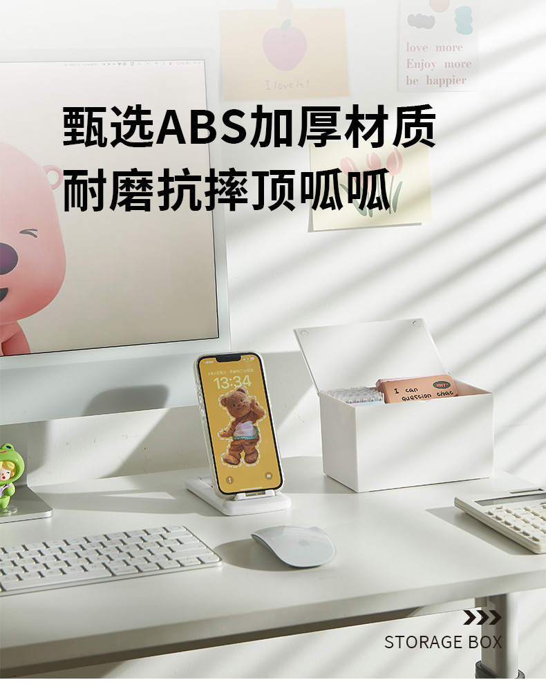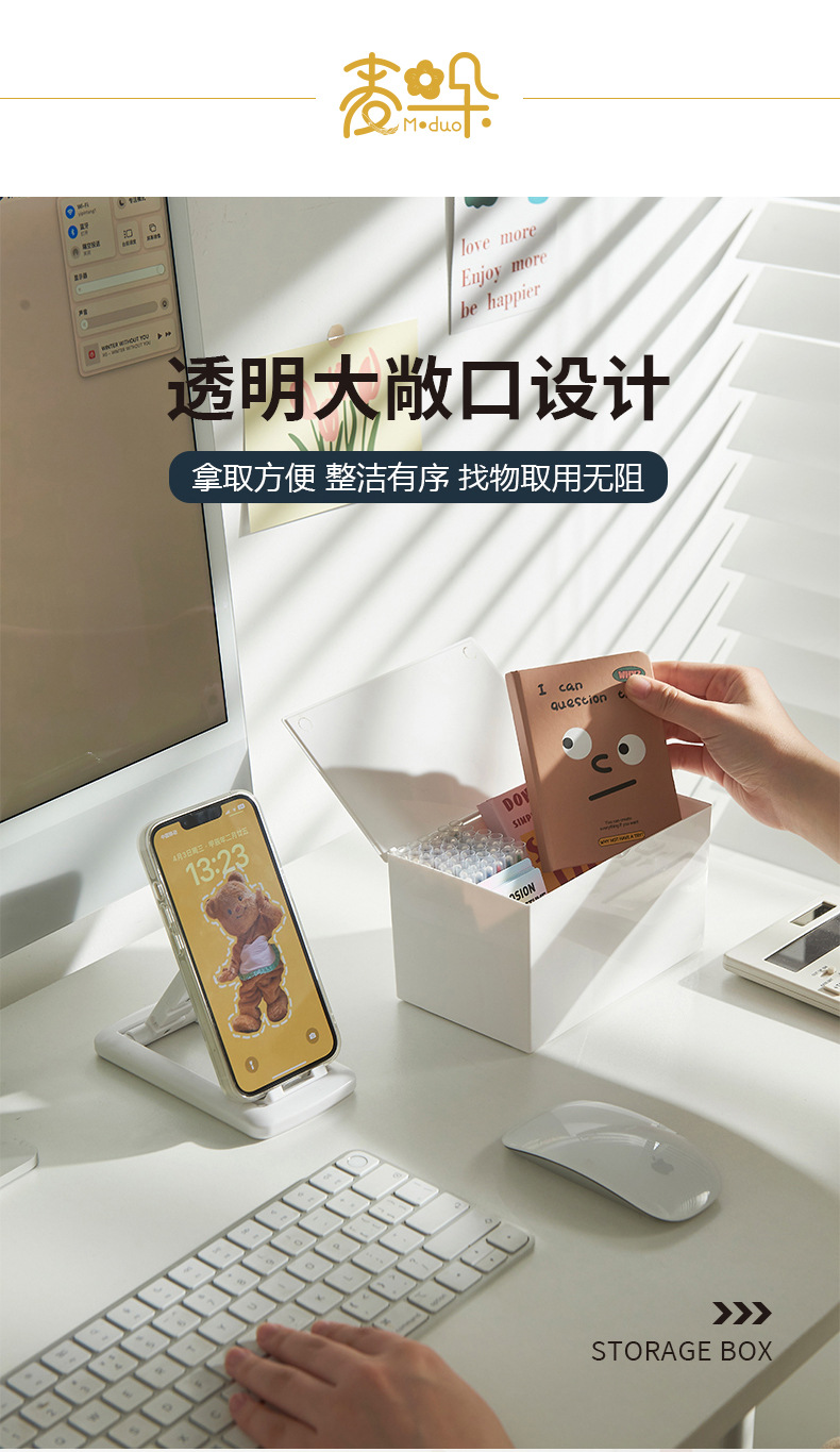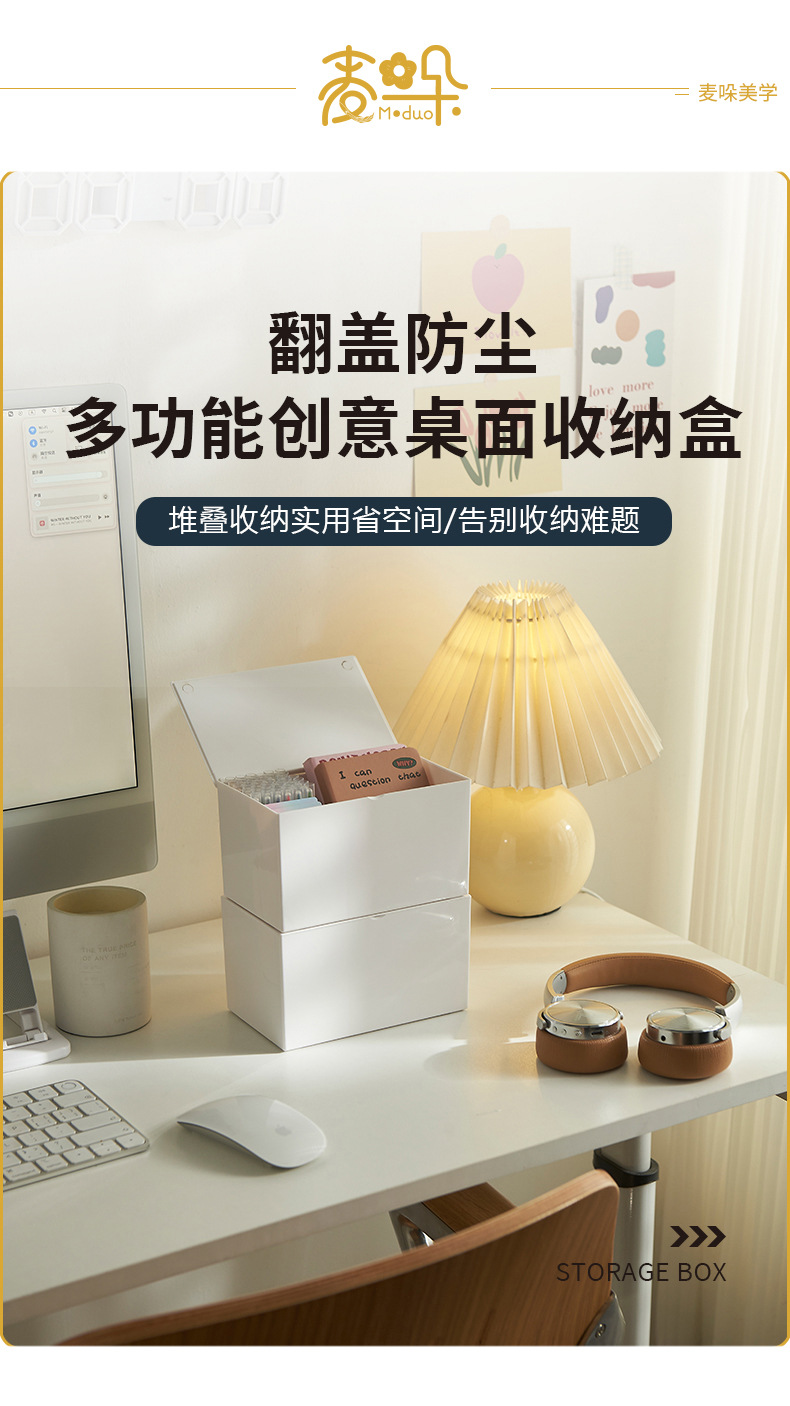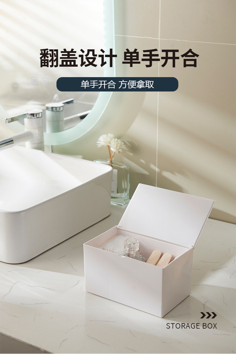 デスクトップ防塵収納ボックスフラップ角型綿棒化粧綿収納ボックス爪切り小物分割整理ボックス
