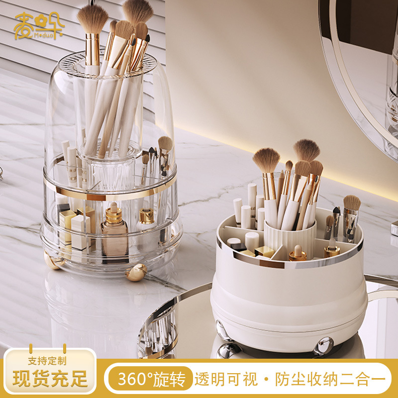 轻奢风化妆刷收纳盒可旋转防尘眉笔筒化妆品收纳筒桌面口红整理盒
