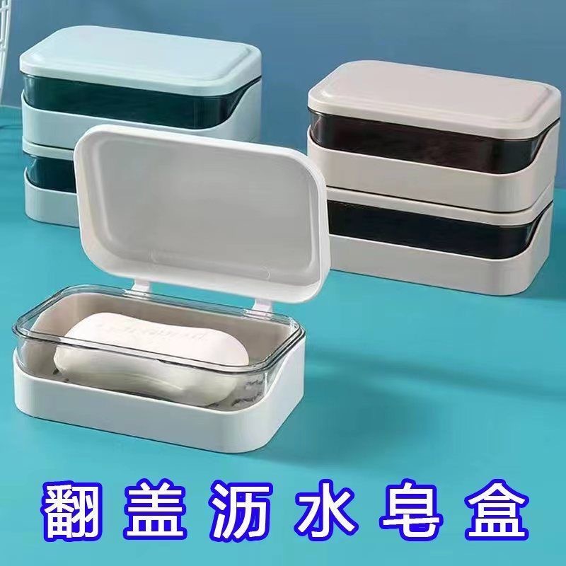 蓋付きポータブルソープボックス、ドレントレイ付きフリップトップ、家庭用バスルーム収納ボックス、二層ソープボックス、3層