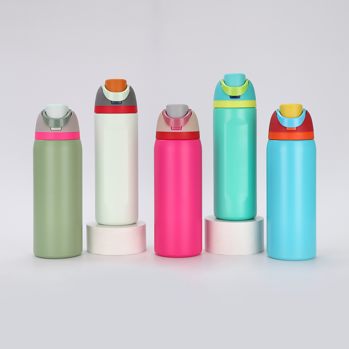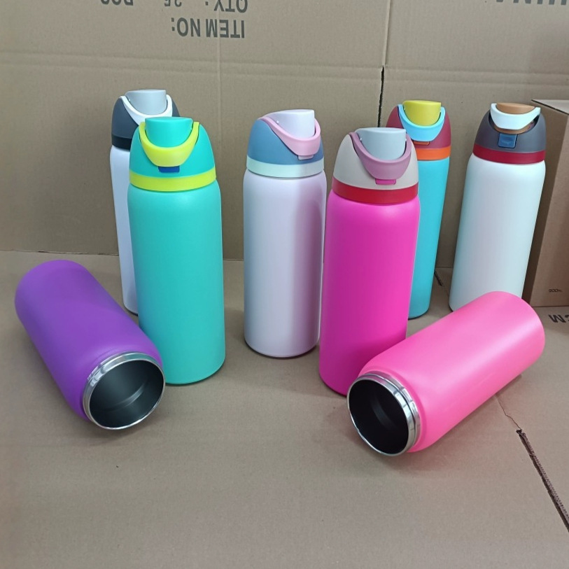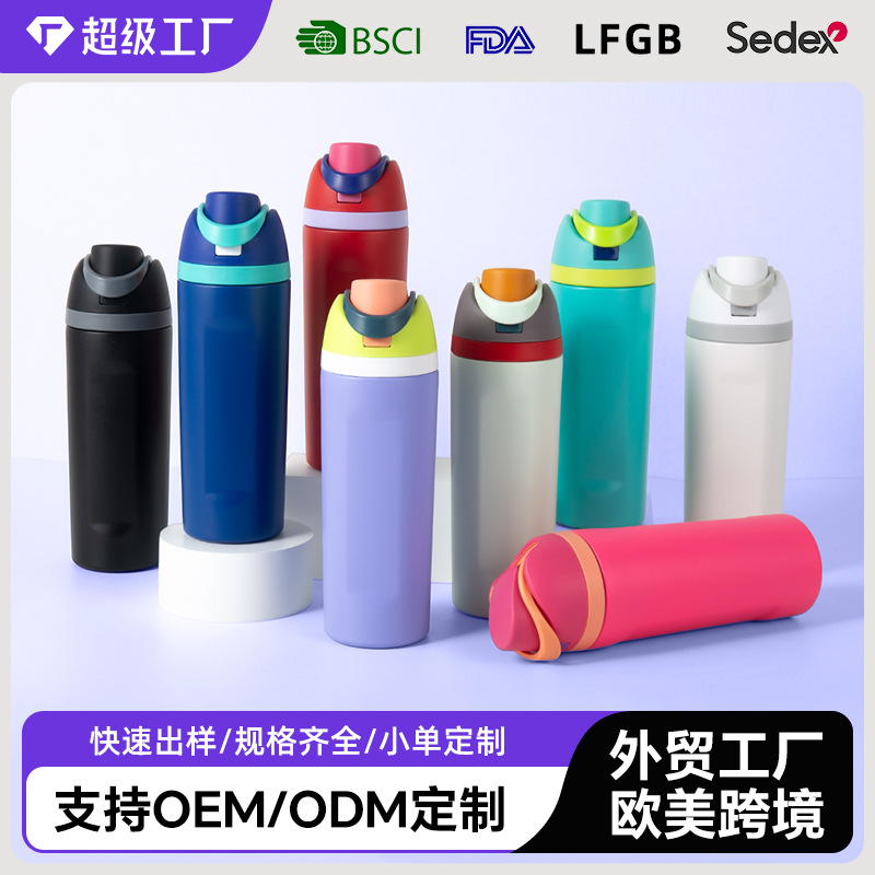 新款跨境包胶盖水果杯304不锈钢保温杯弹跳杯户外便携水杯运动杯