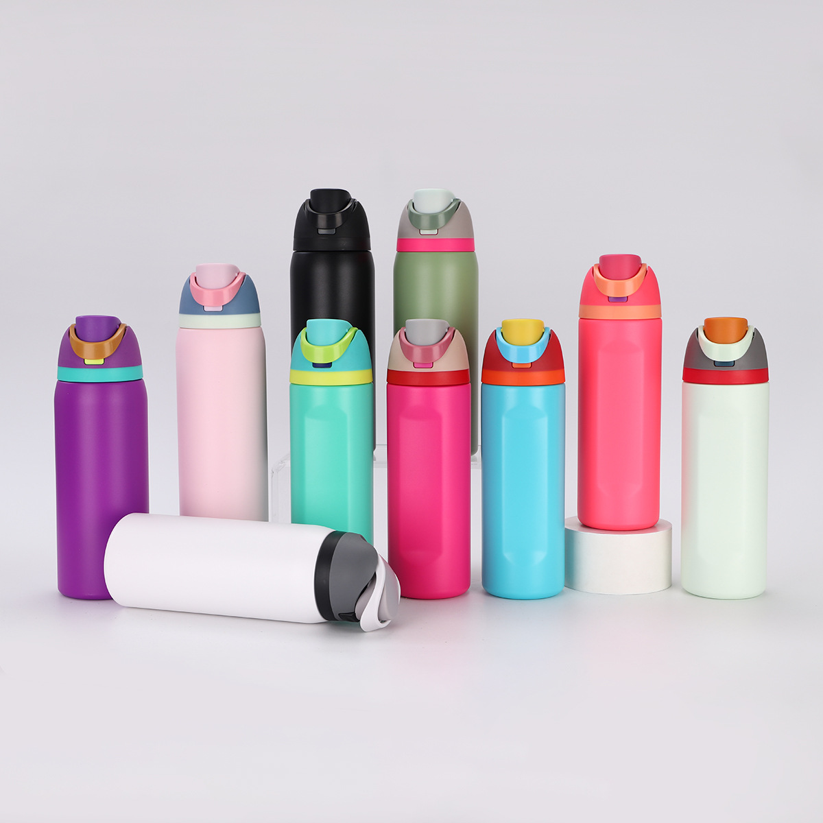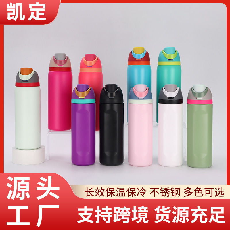新款跨境304不锈钢真空保温杯网红同款简约弹跳水果杯便携双饮杯