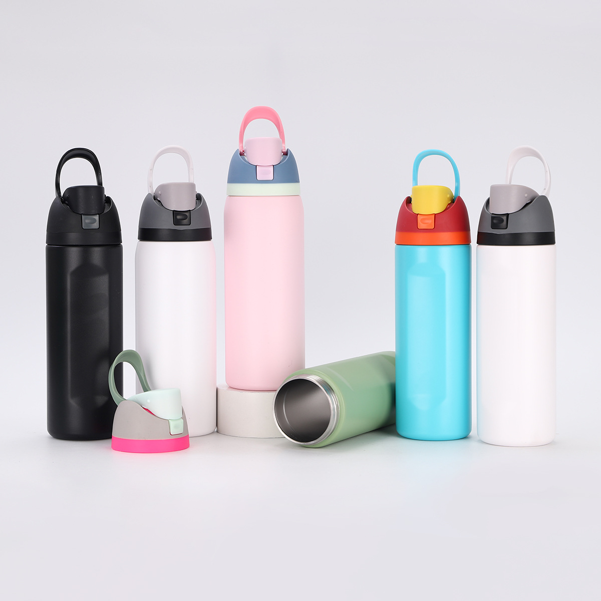 国境を越えた新しい 20 オンス二重蓋小口ボトル 304 ステンレス鋼魔法瓶カップ屋外ポータブルロープスポーツウォーターボトル