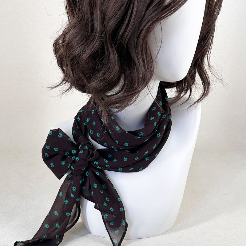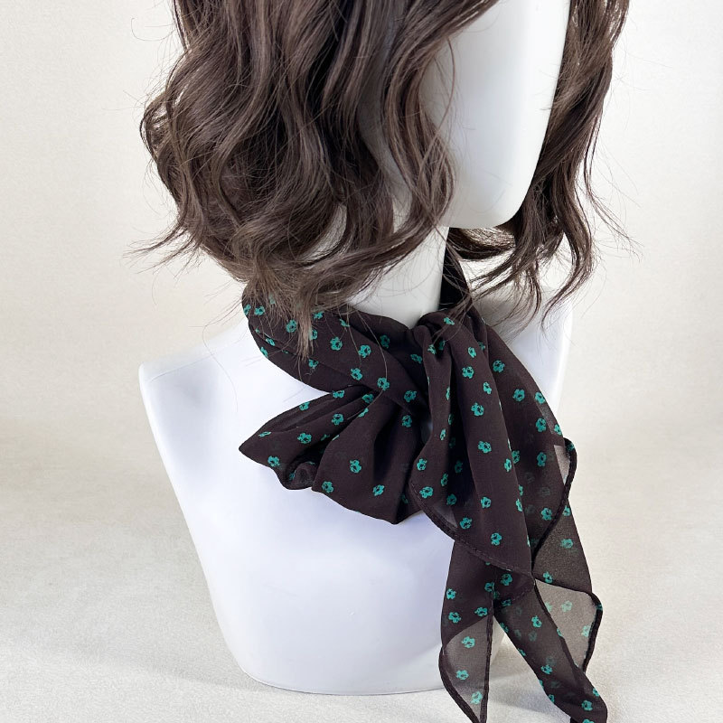 韓系春夏の薄い曲の歯の波点のシルクタオルの女性の雰囲気感の三角のスカーフの流行の装飾のスカーフの多機能