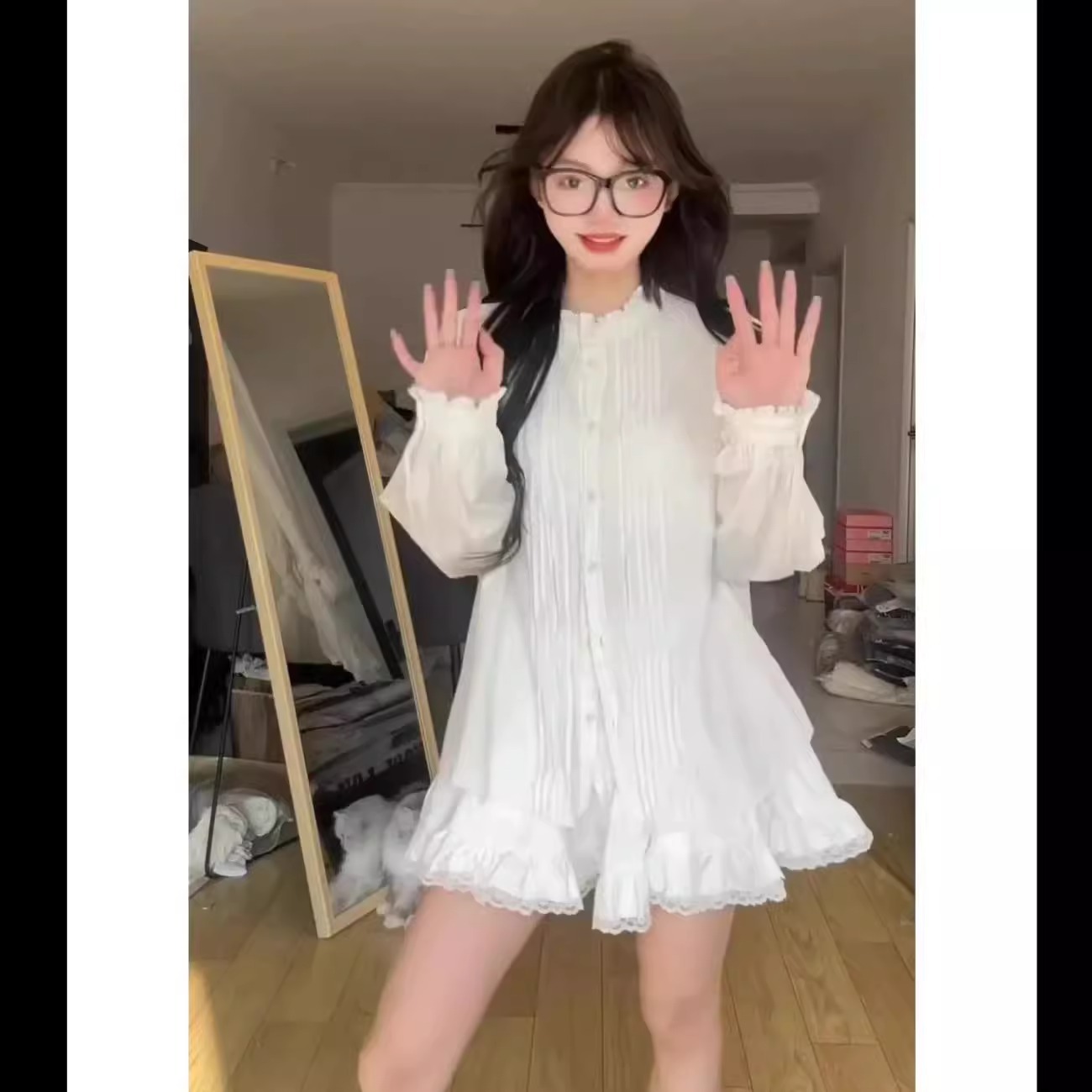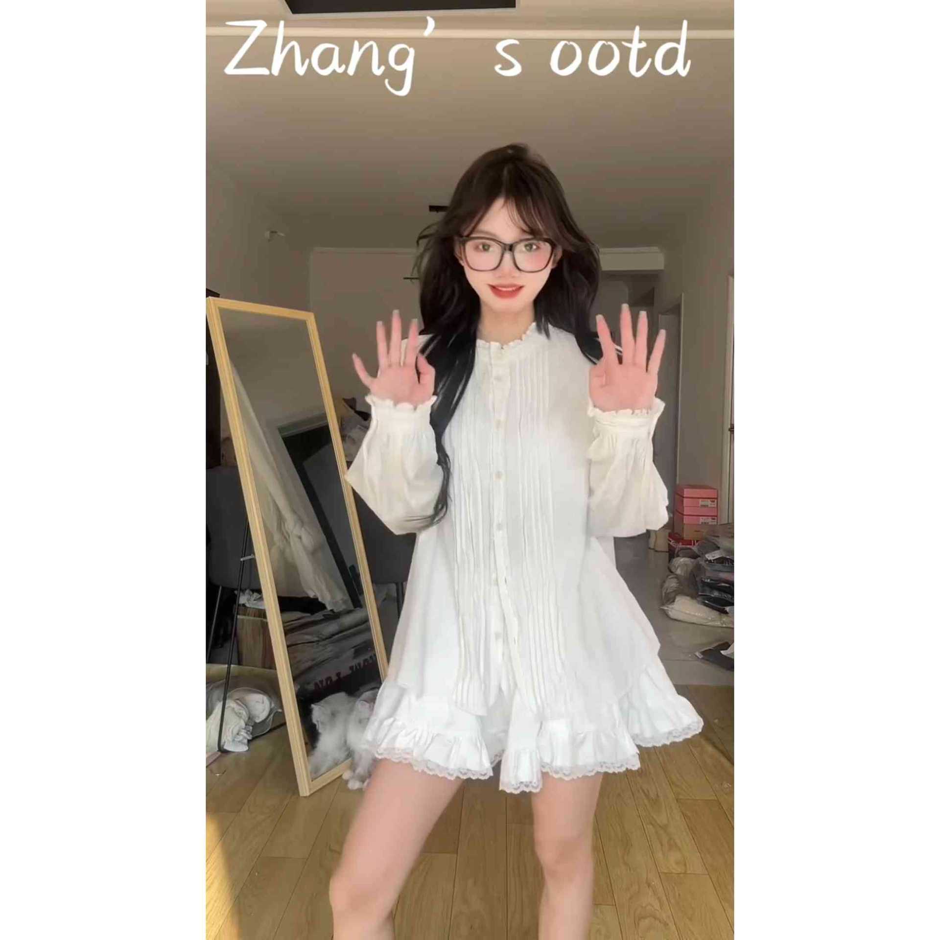 2025超火シャツの女性は春に新しいフランス風の優しい風の独特な美しい白い長袖のしわの上着を着ます。