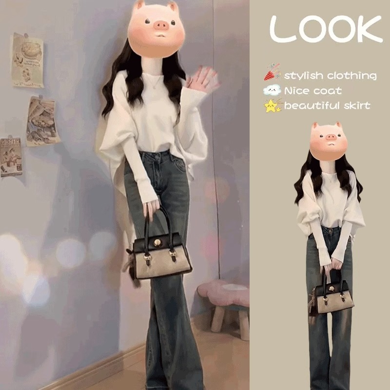 今年は秋冬に女性のカジュアルな雰囲気に合わせて、ニットのファッションに合わせてジーンズの2つのセットを着るのが流行しています。
