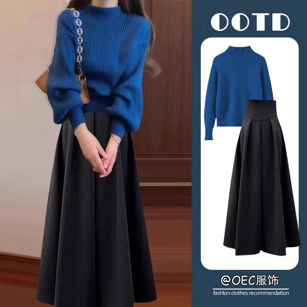 ファッションが洗練されている2024秋冬の痩せたスーツの女性ニットのセーターは、気質の半身のスカートの2つのセットになっています