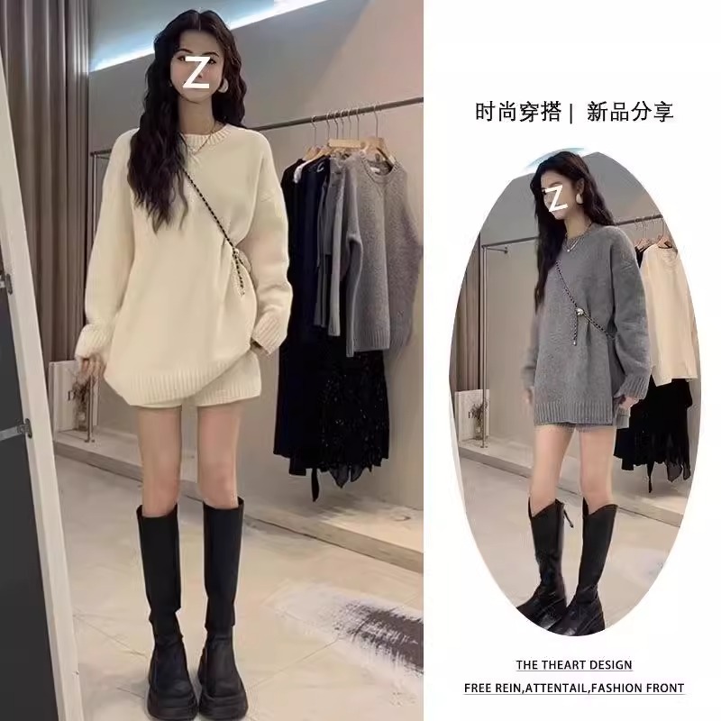 春の怠惰な風は女性の新型を着て、今年はネットの赤い風のプルオーバーのセーターの高腰の半ズボンの2つのセットのファッションが流行します。