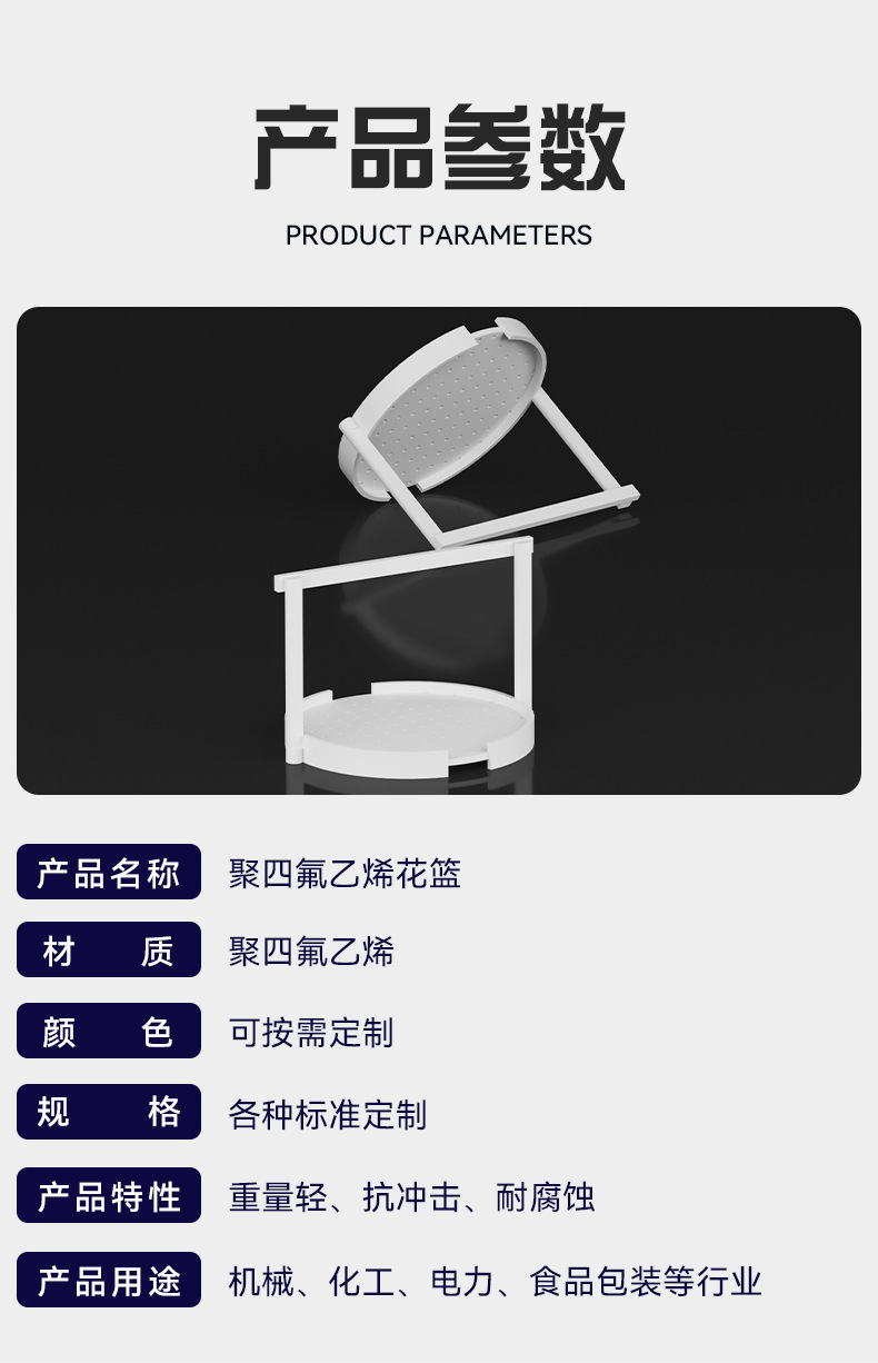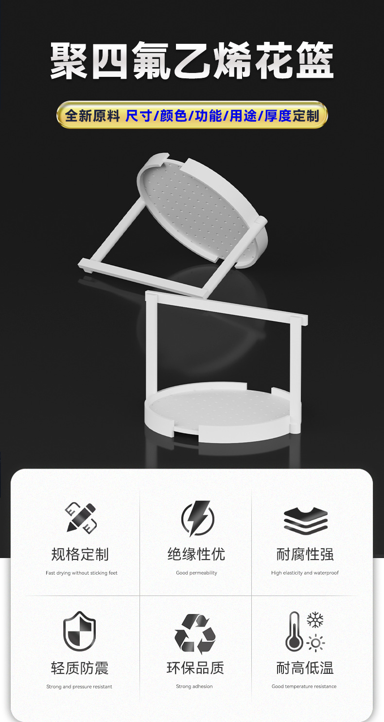 PTFEフラワーバスケット耐食性酸およびアルカリPTFEフラワーバスケット特殊テフロン半導体実験洗浄ラック