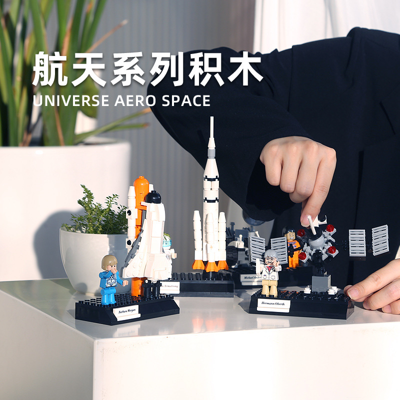 万格の積み木のスペースシャトルの積み木はおもちゃを詰めて月を探して天のロケットの衛星の宇宙の小さい粒子の積み木を突きます