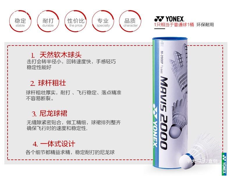 YONEユーニックSバドミントンプラスチックyyナイロンボール耐打用トレーニングボール屋外防风M200宇天