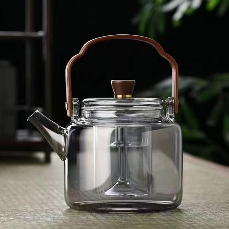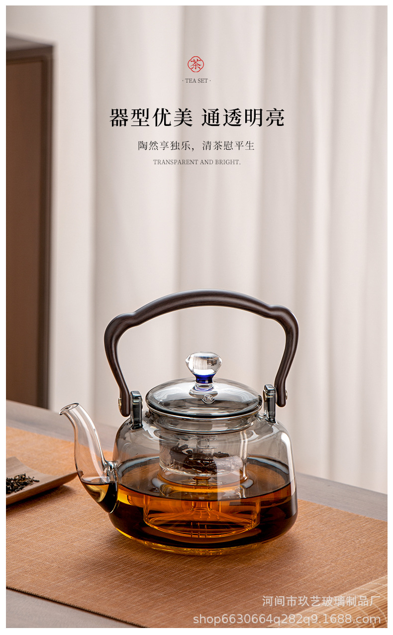 囲炉煮茶家庭用蒸煮ティーポット卸売り高ホウ素シリコン泡ティーポットガラス耐高温提梁ポット