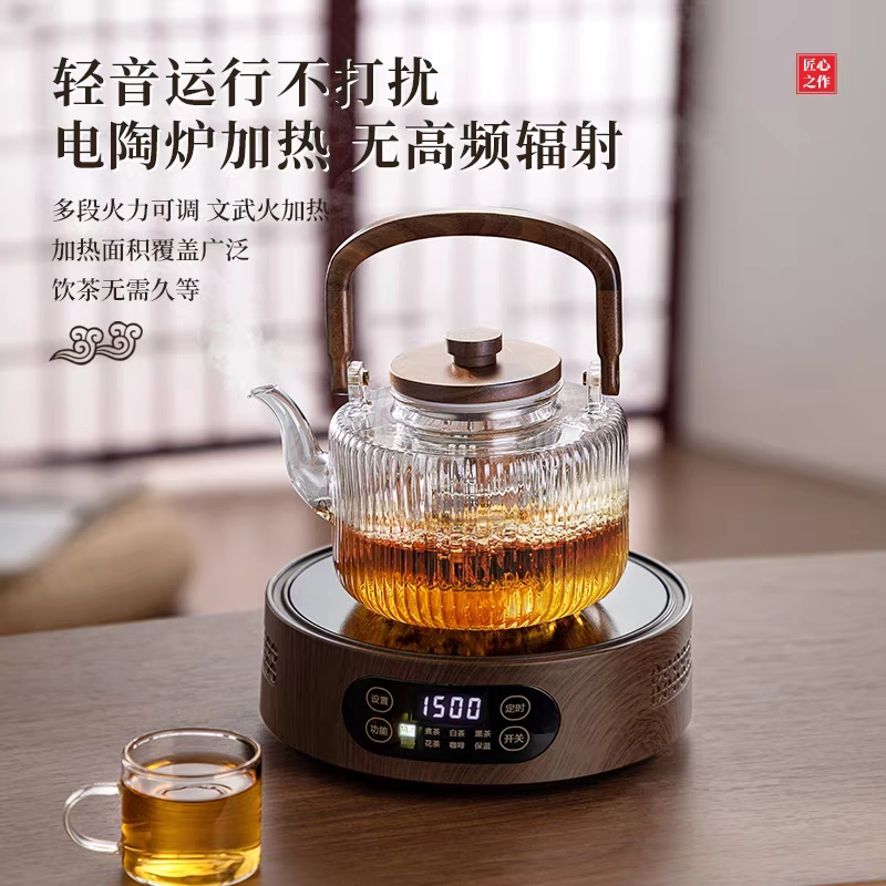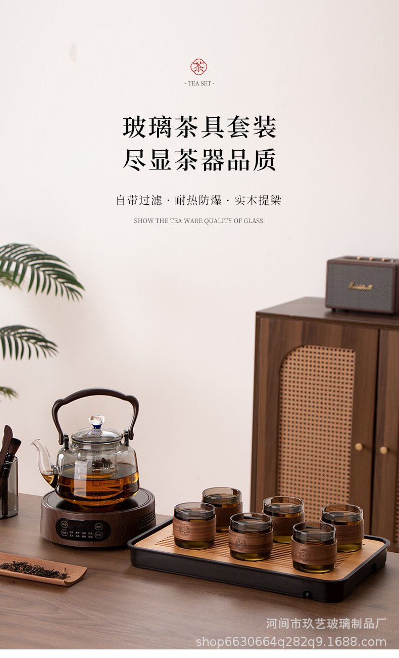 电陶炉煮茶壶5新玻璃烧水壶泡茶用个人办公高端提梁煮茶器套装