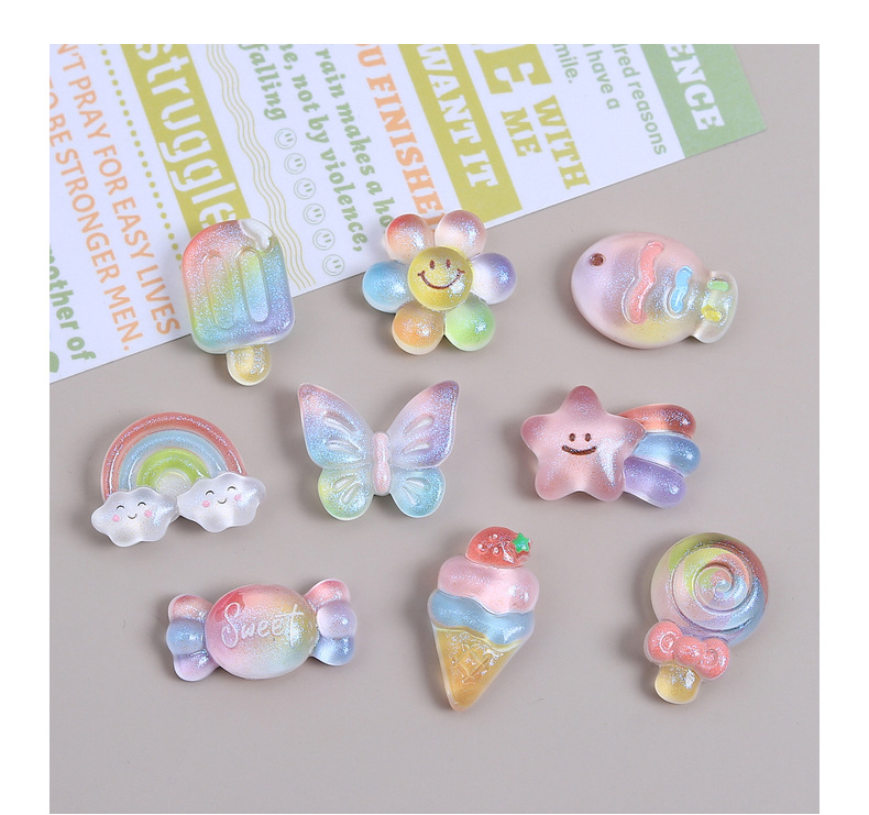 ミニカラーアイス透明リトルスター漫画手作り diy クリーム接着剤樹脂アクセサリーホール靴バックルジュエリー材料