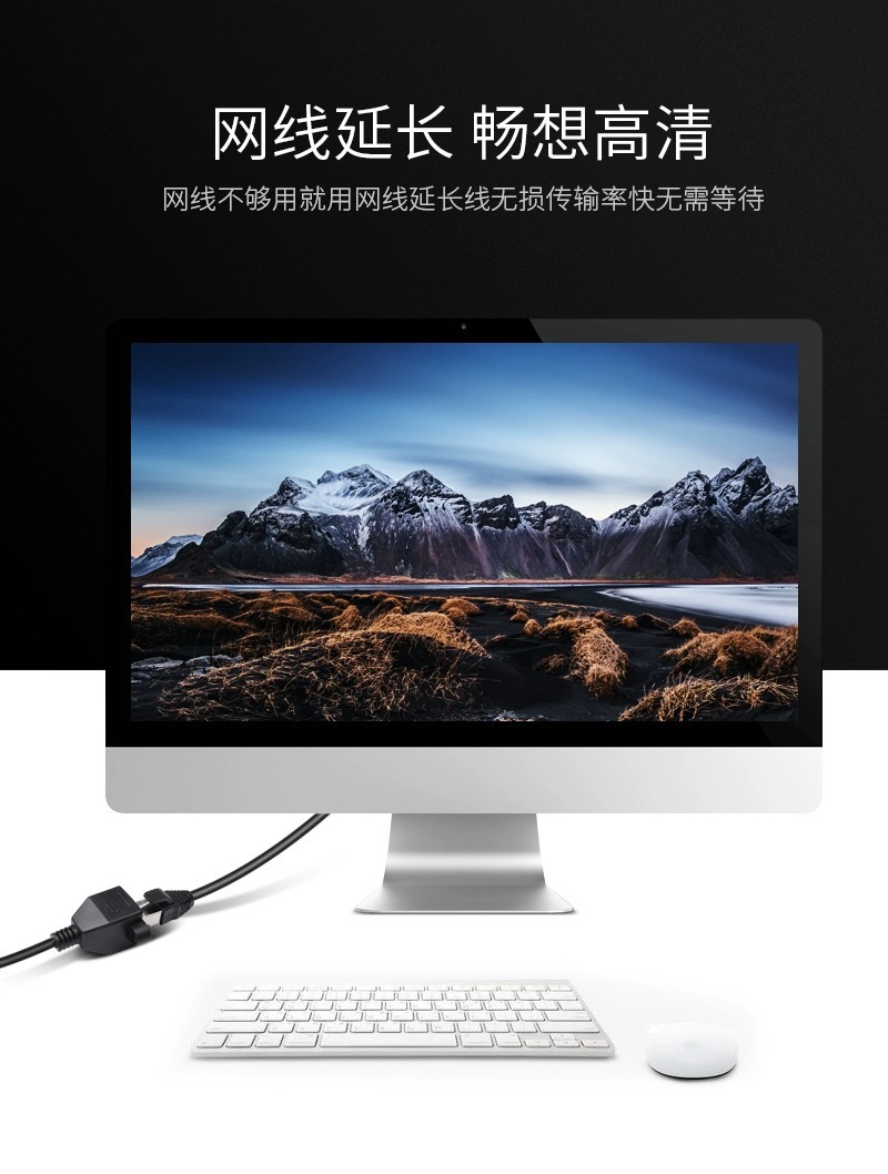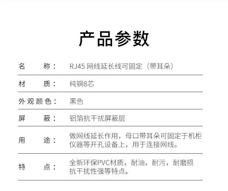 RJ45公对母延长线带耳朵带螺丝孔可固5E cat6e六类千兆网络延长线