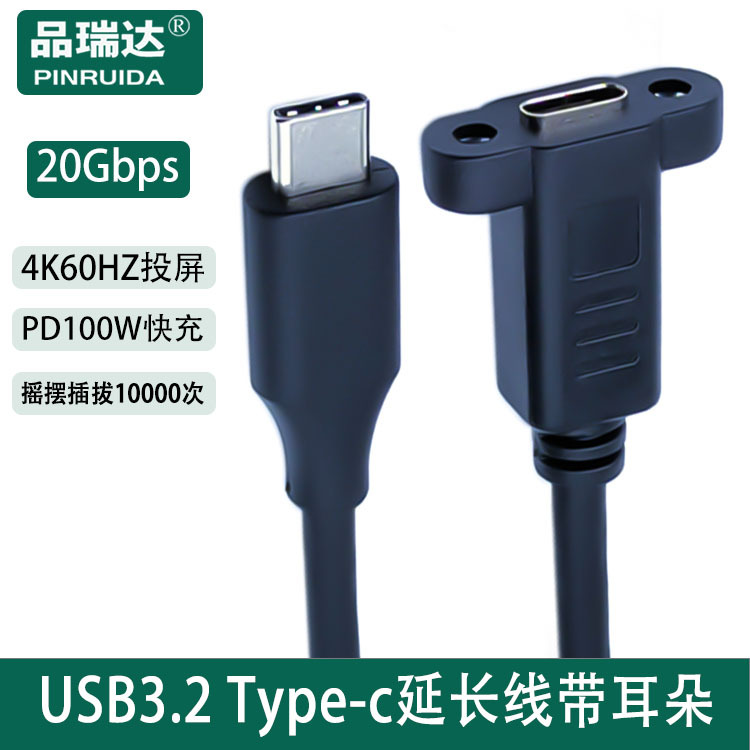 USB3.2 Type-C 延長ケーブル イヤー付き フル機能 Type-C オス - メス延長ケーブル ネジ付き