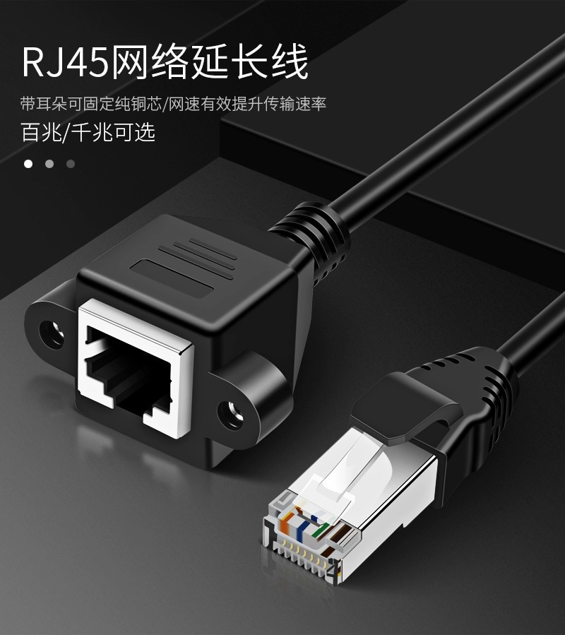 耳ネジ穴付きネットワークケーブル延長ケーブル固定rj45超五類cate 5公対母ネットワーク延長ケーブル