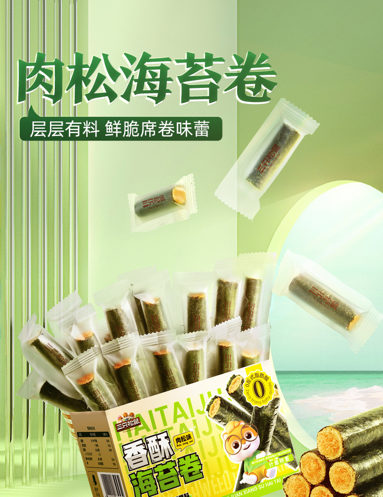 【三只松鼠_肉松海苔卷】罐装夹心海苔海味蛋卷休闲健康零食