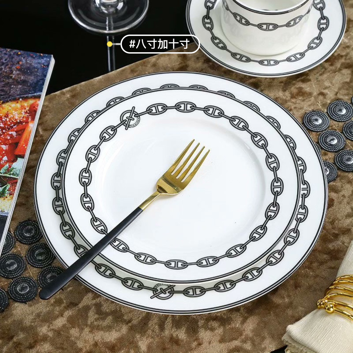 H愛馬家豚鼻チェーン骨磁器コーヒーカップ皿ランチカップ皿四点セット洋食ステーキ皿家庭用