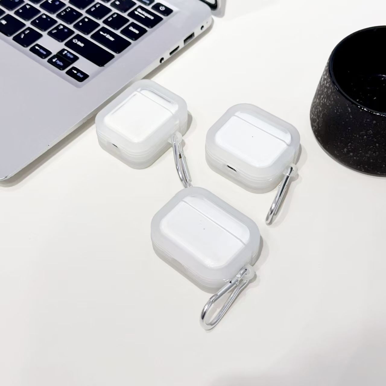 アップルairpod4イヤーケース透明保護カバー2世代3世代防塵カバーシンプルなダブルリング素材ソフトケースを適用します。