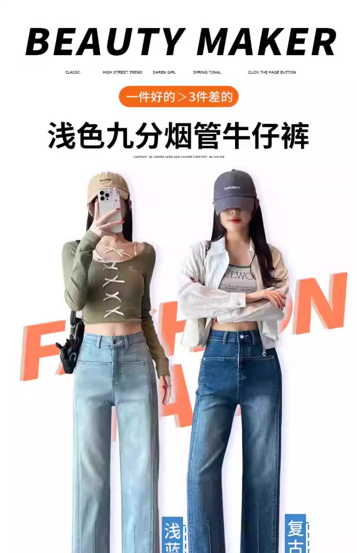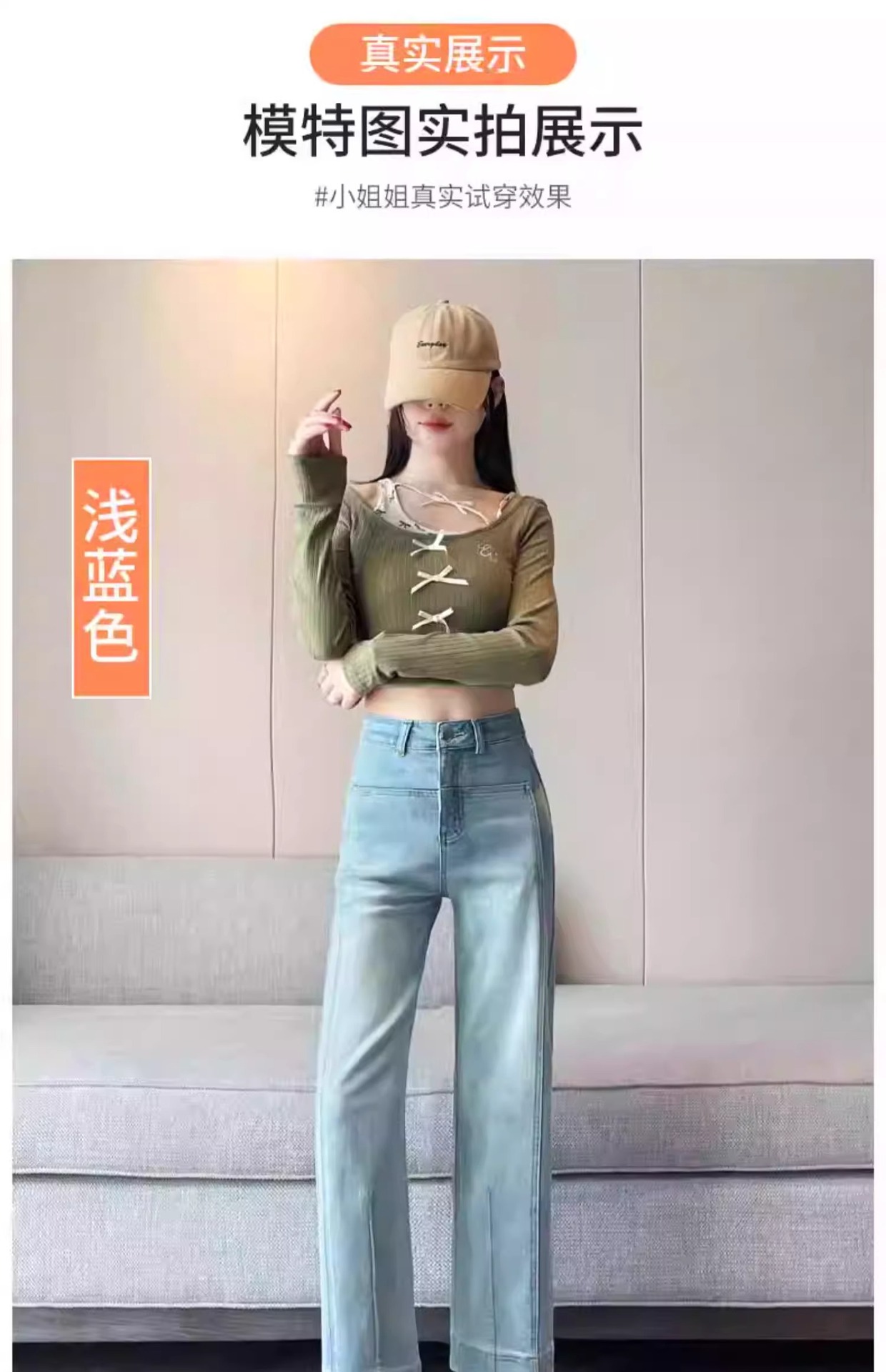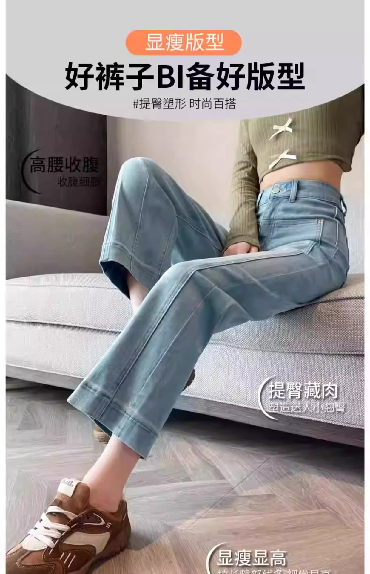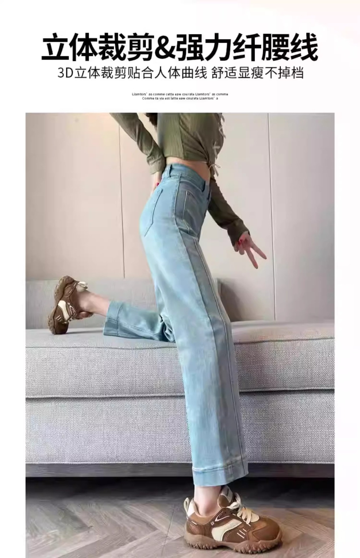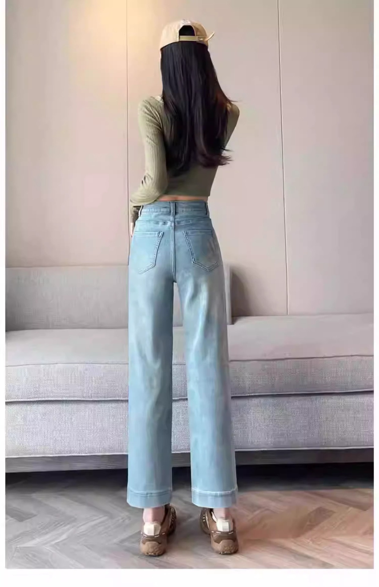 水色の狭い版のタバコの管のジーパンの女性の2025春の新型の高い腰の小さい背の弾力の法の棒のストレートなズボン
