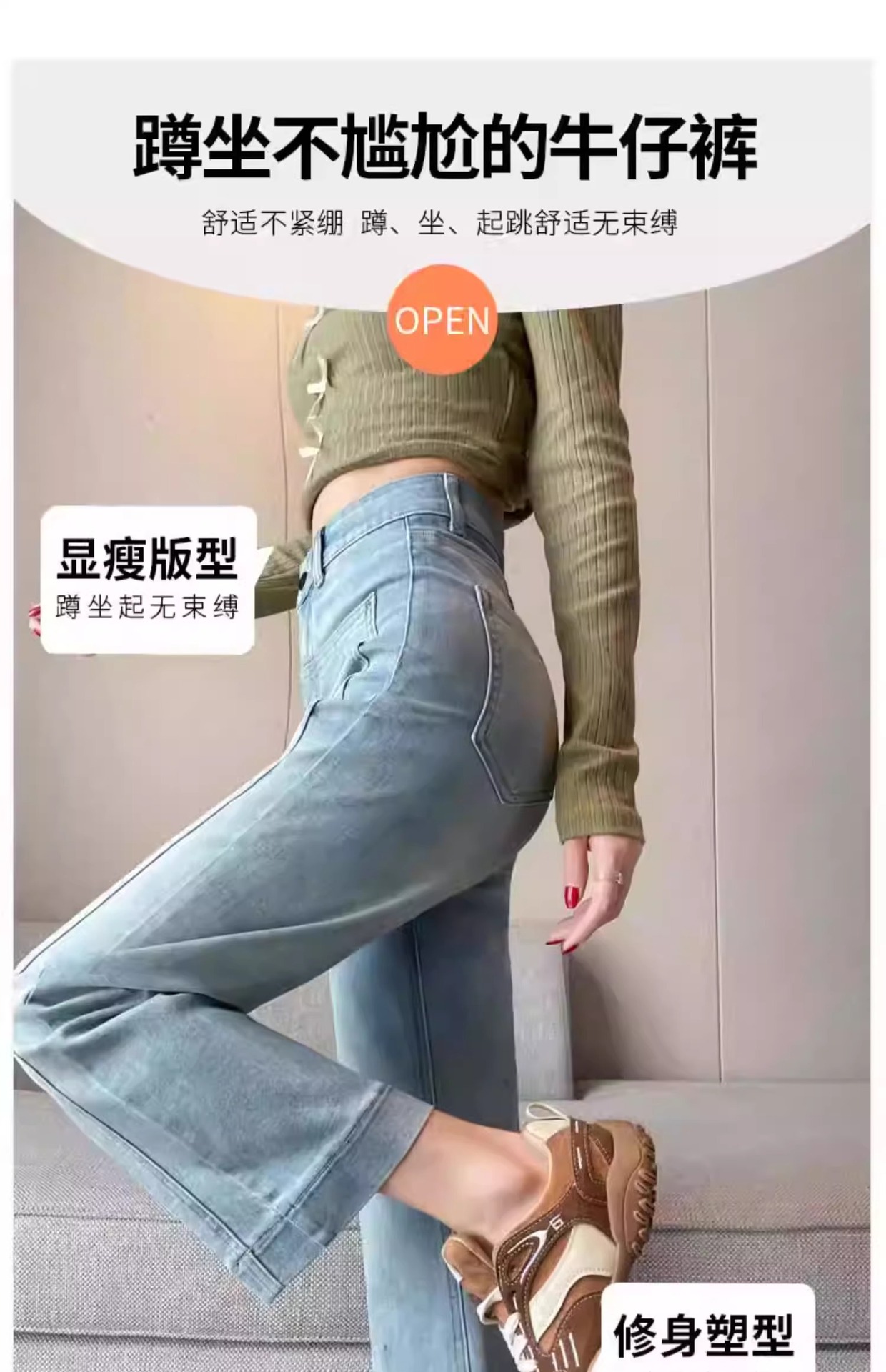 2025年春秋向け、高級感のあるラインストーン付き、小柄な女性向け、重工仕様の馬蹄型フレアデニムパンツ