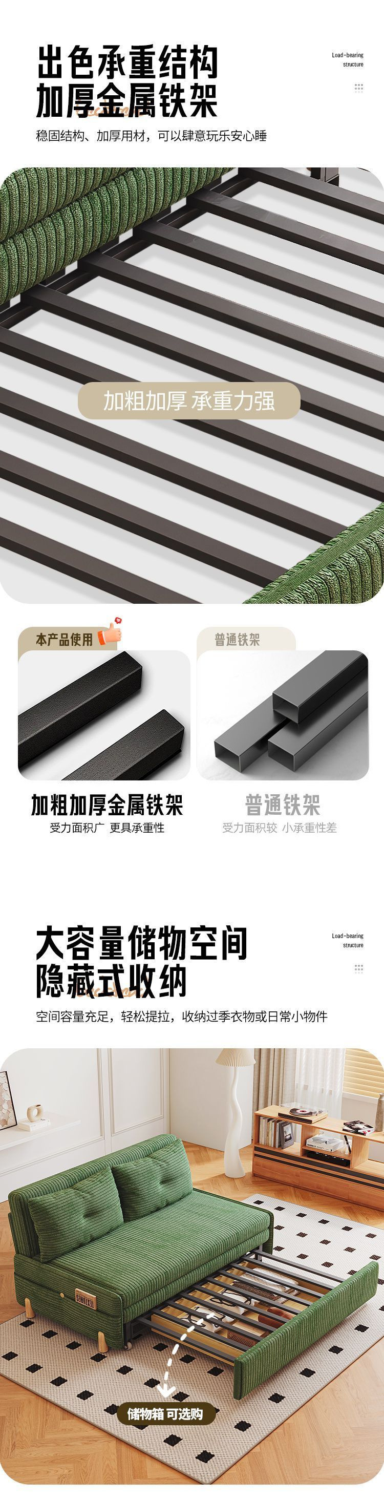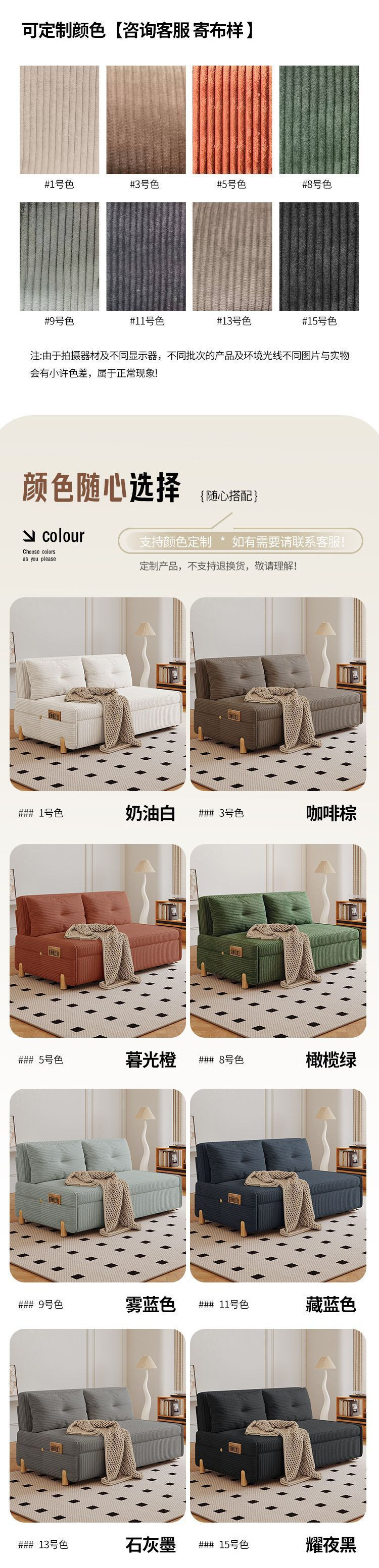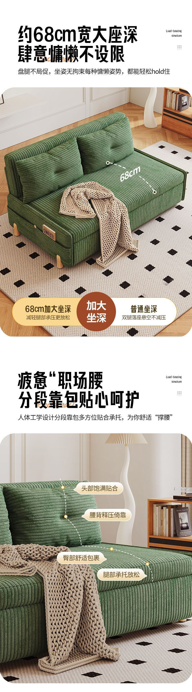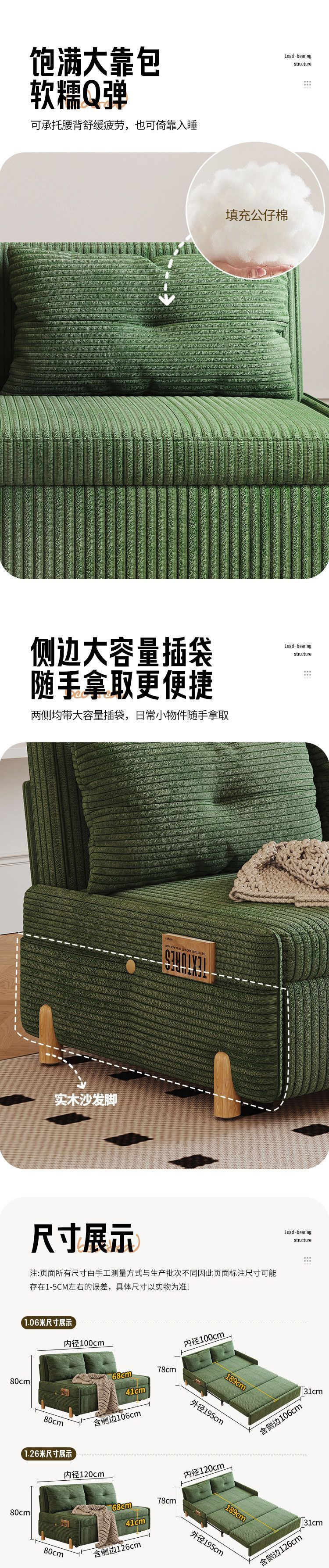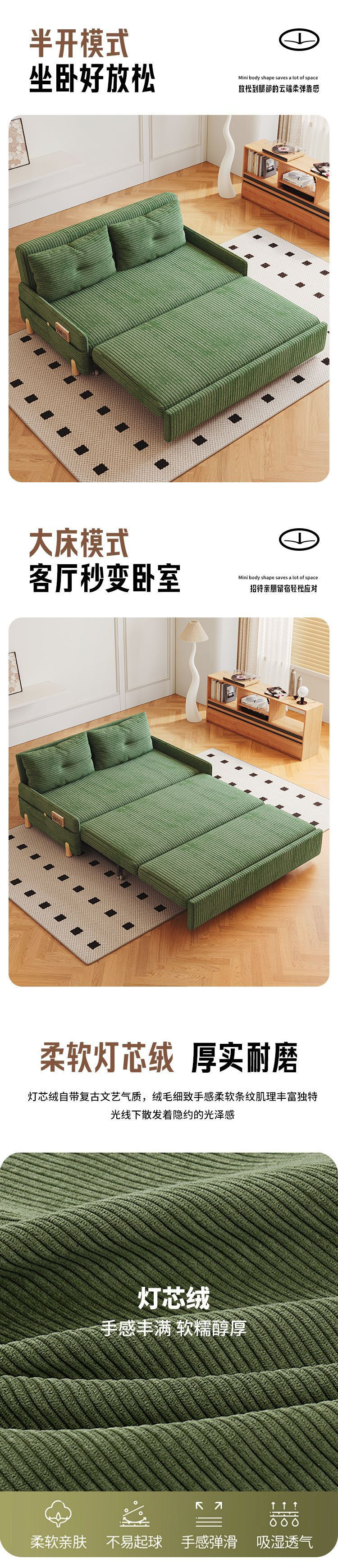 灯芯绒可折叠沙发床两用多功能小户型客厅双人单人阳台伸缩新款