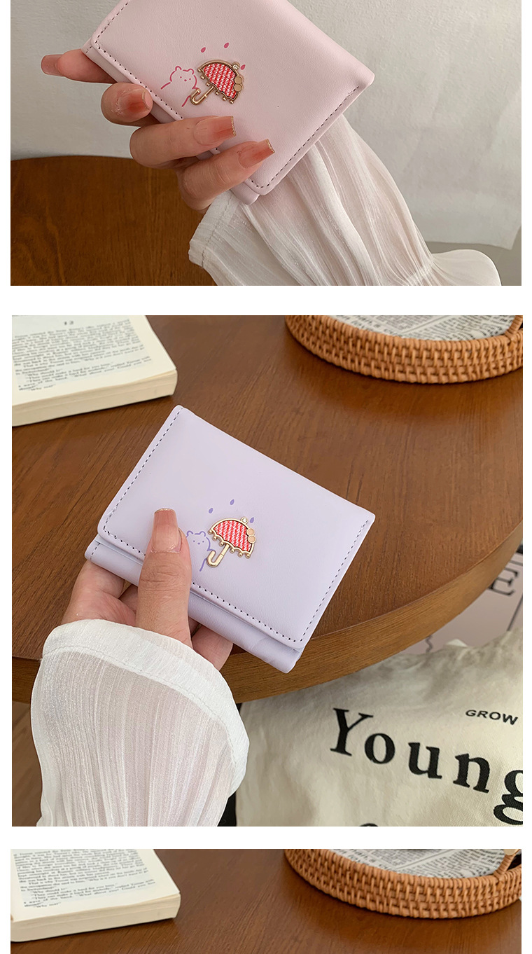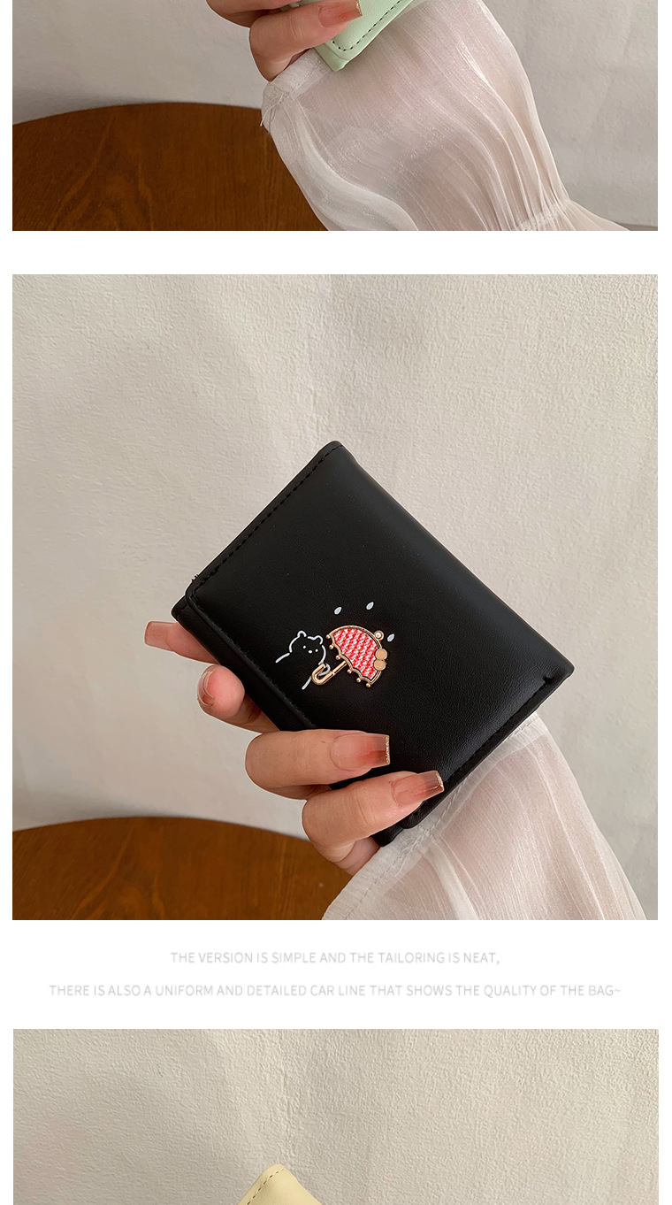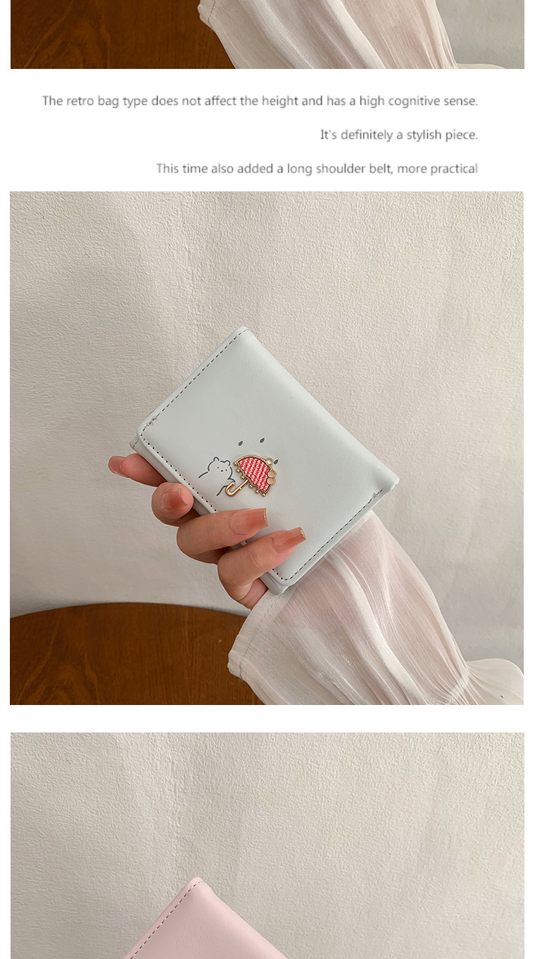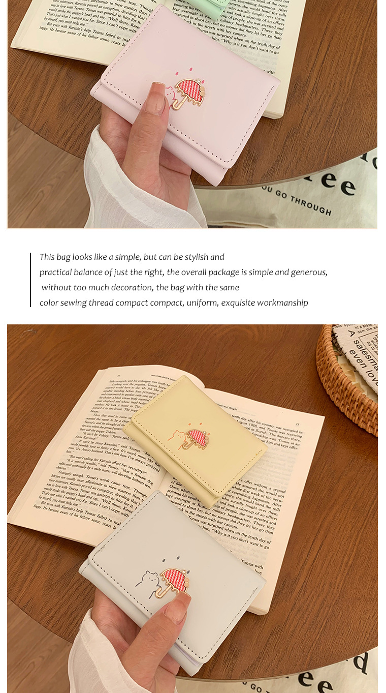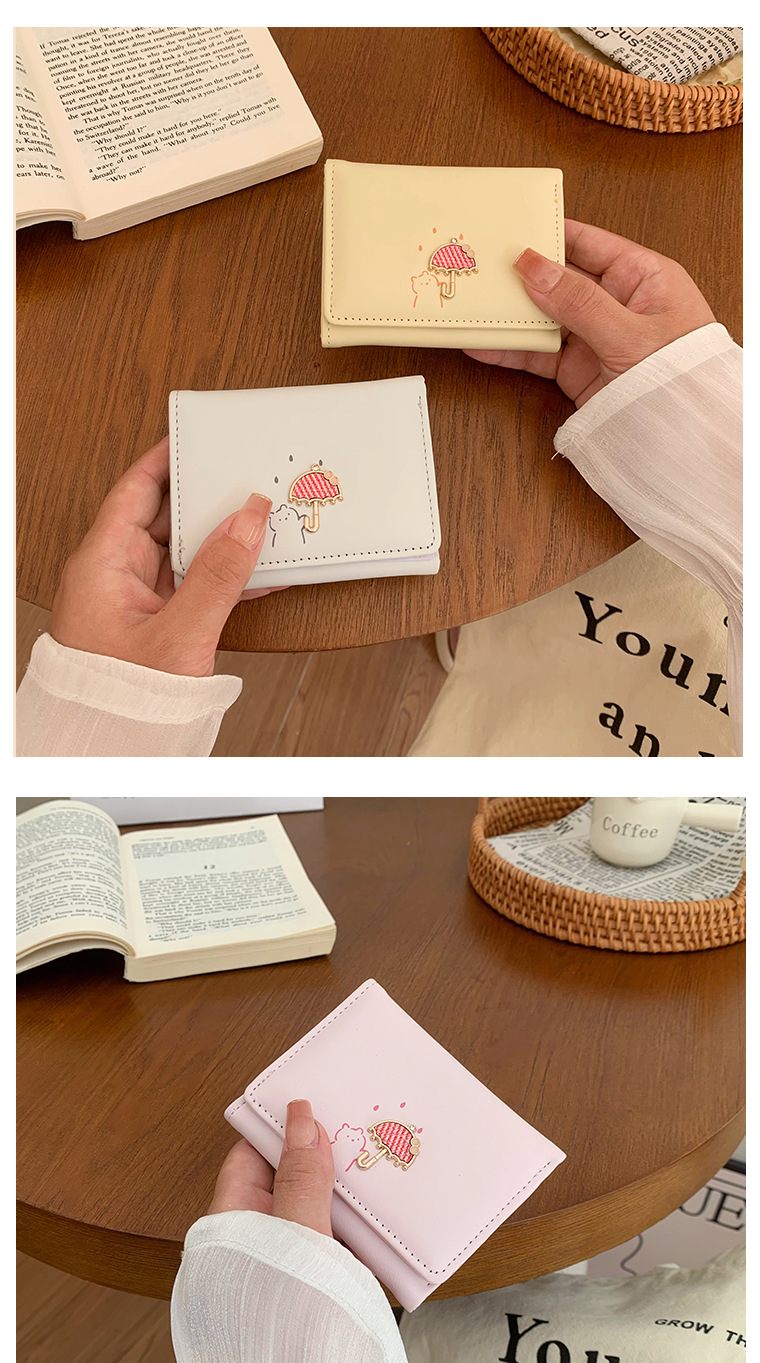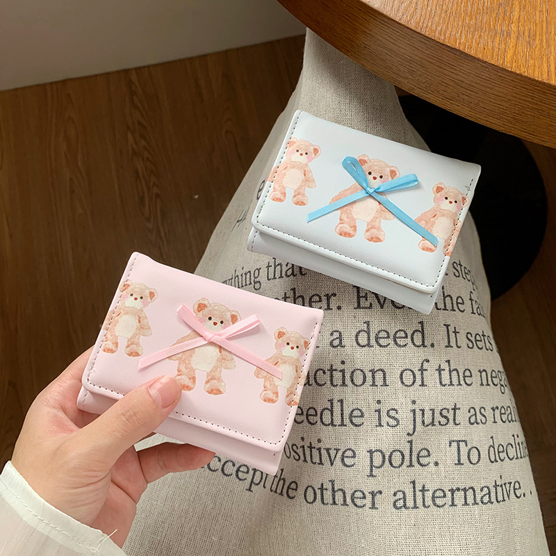 韓国の熊のプリントの財布ins女性の多機能のかわいい学生の収納カードのカバンの3つ折の掛け縄の越境の財布