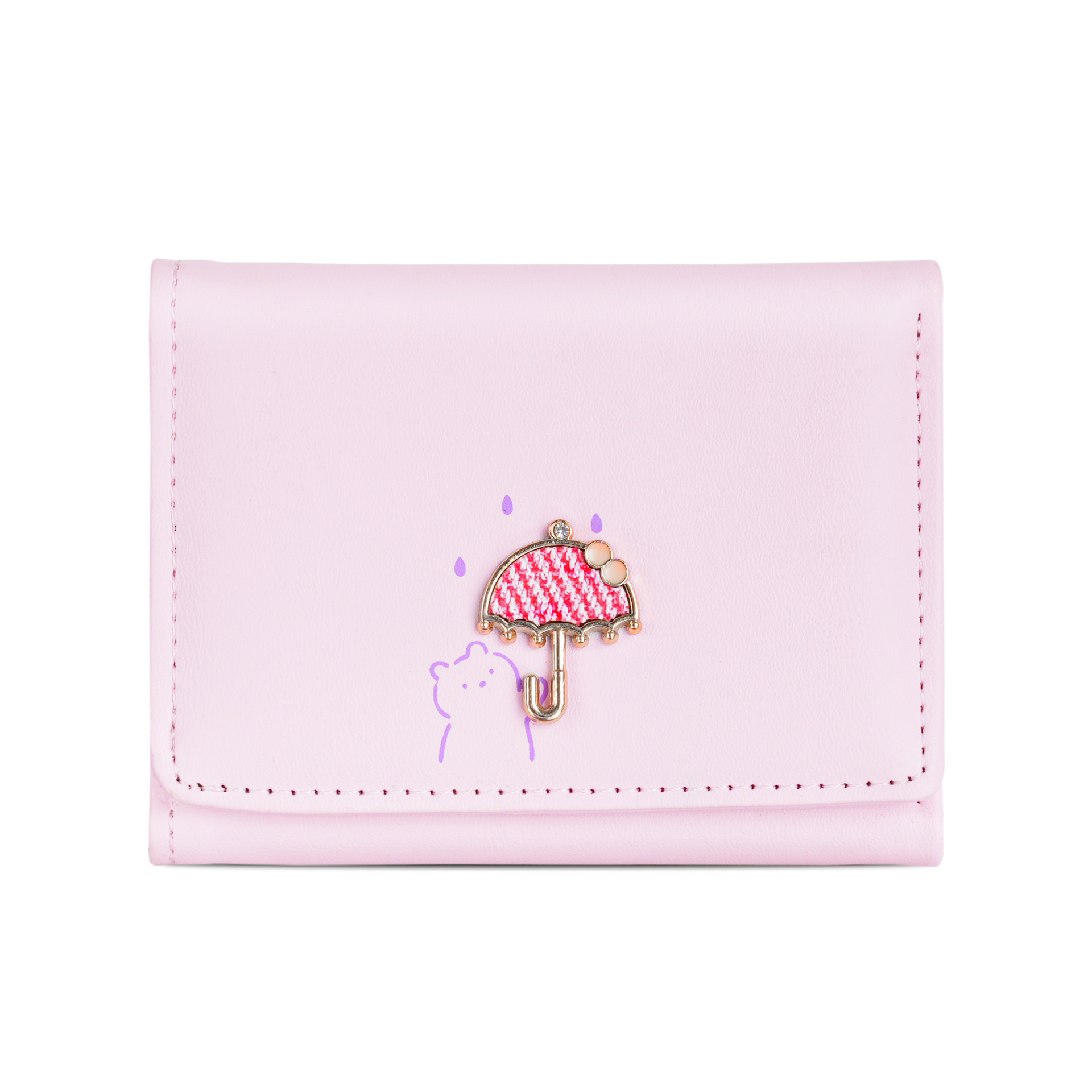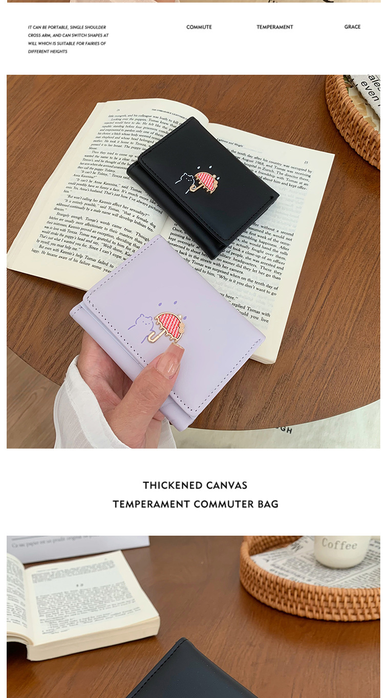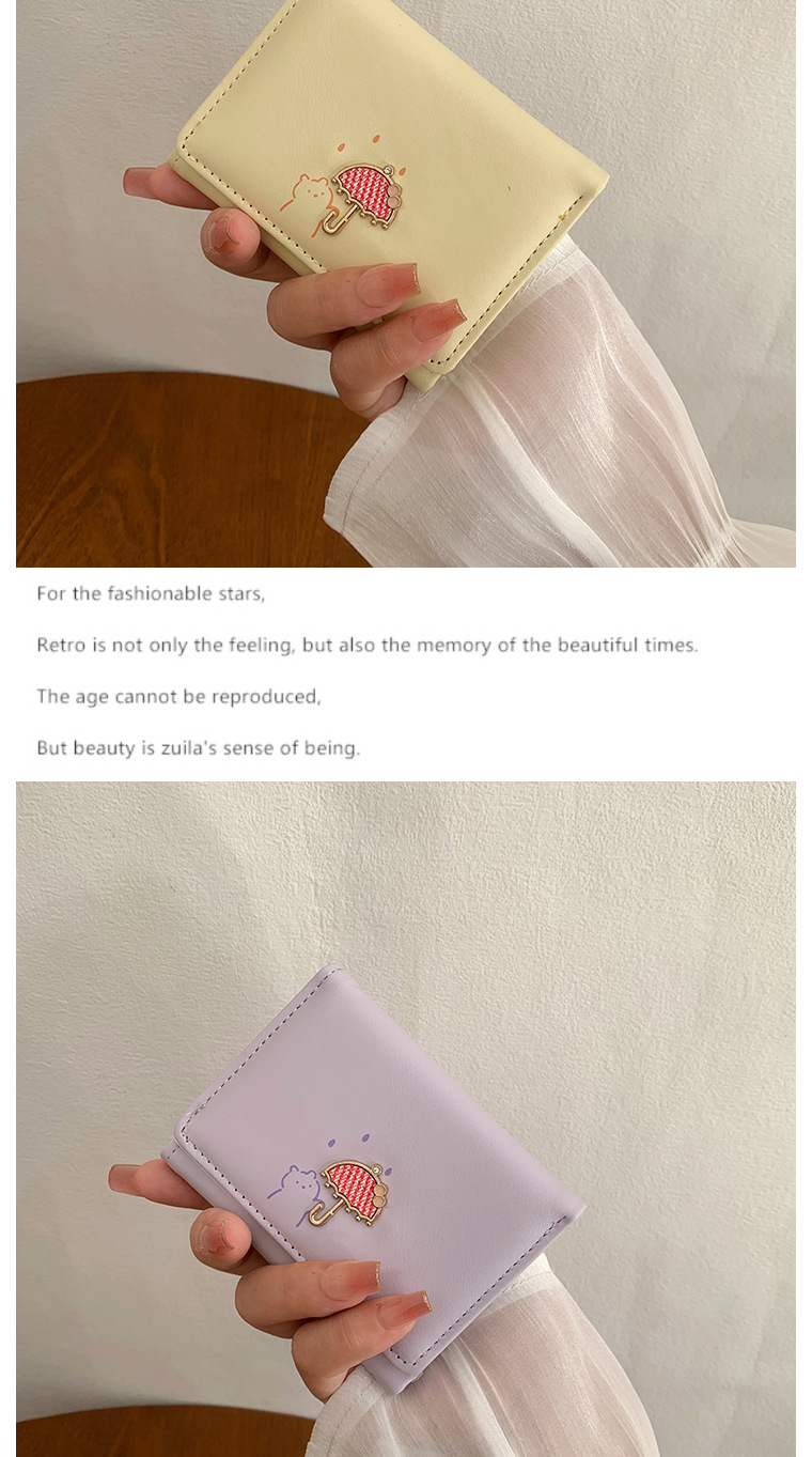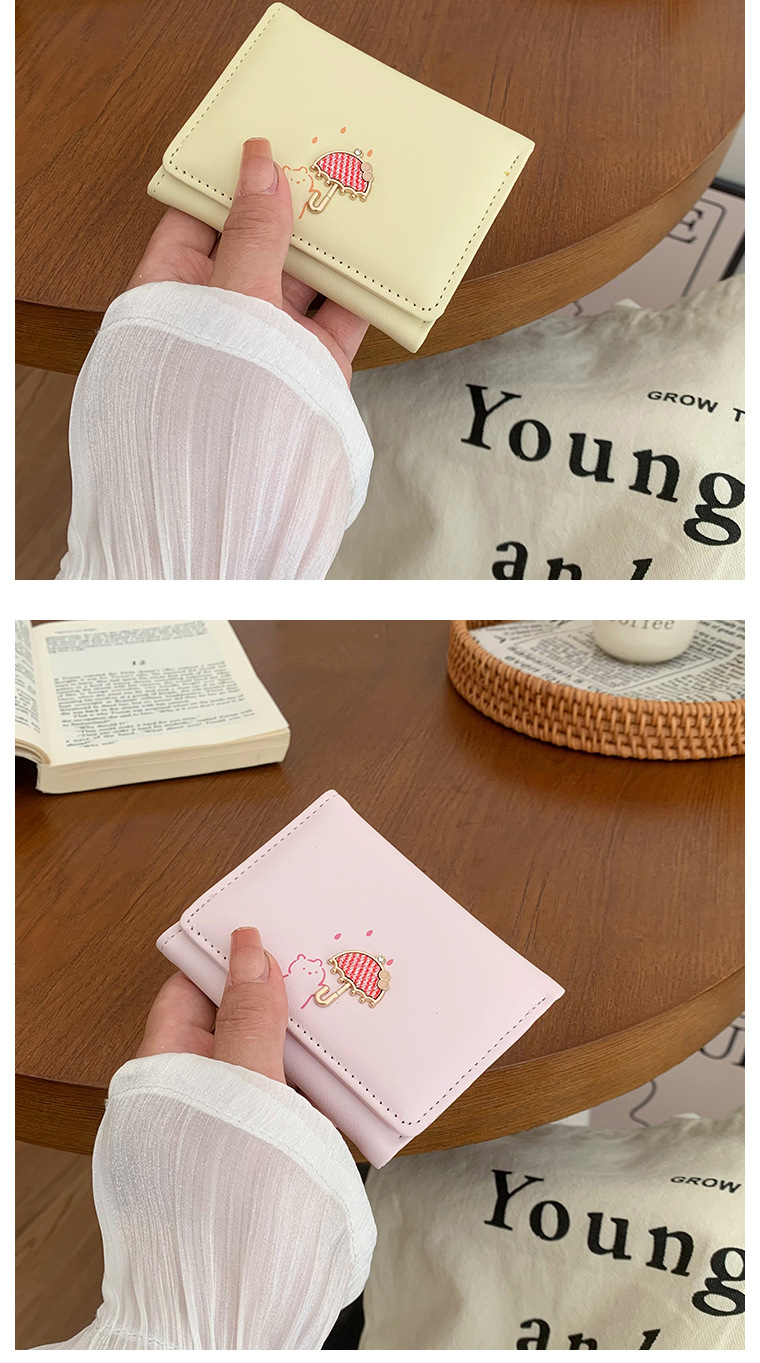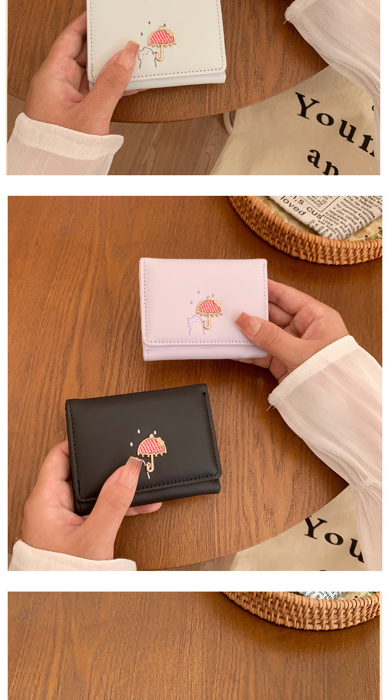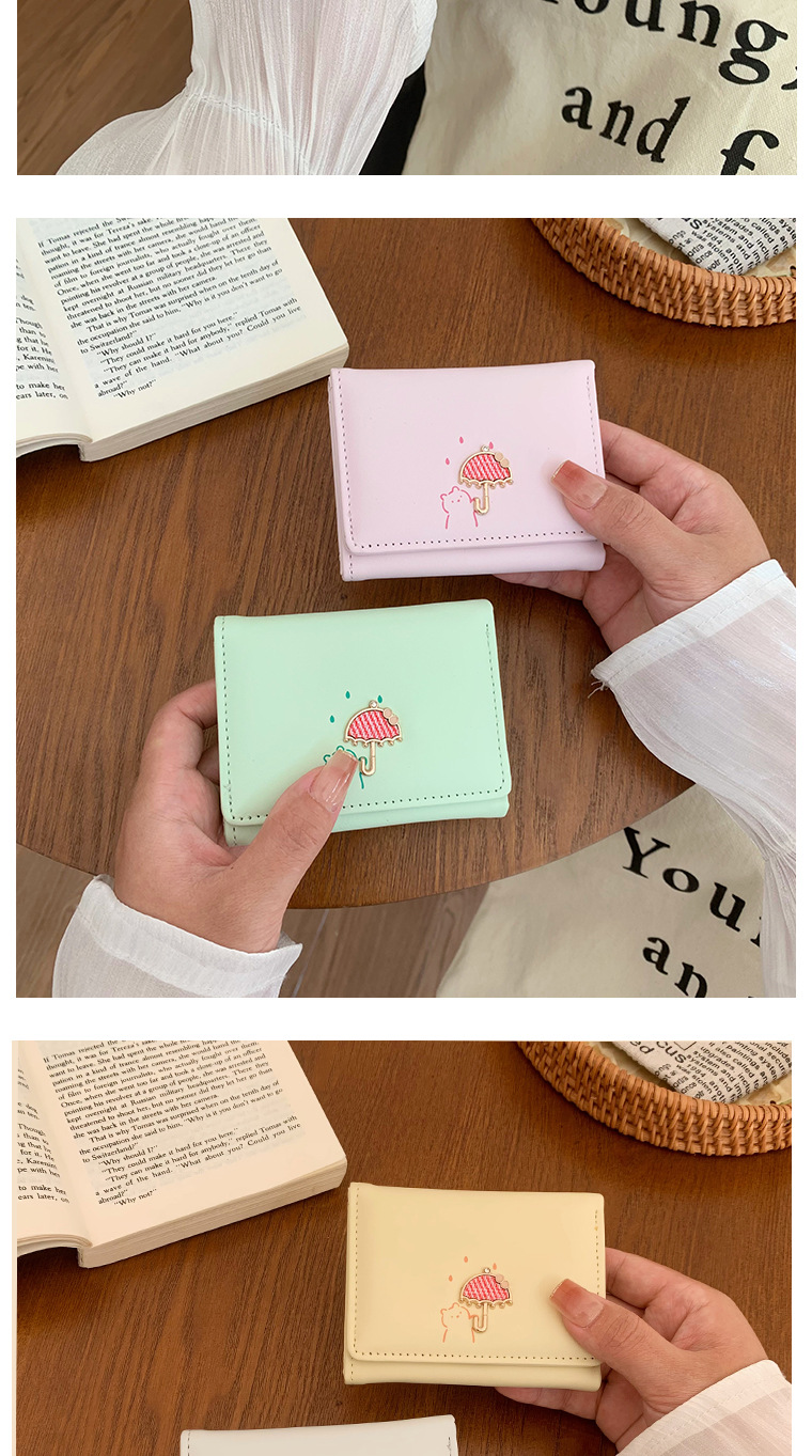 韓国の熊のプリントの財布ins女性の多機能のかわいい学生の収納カードのカバンの3つ折の掛け縄の越境の財布
