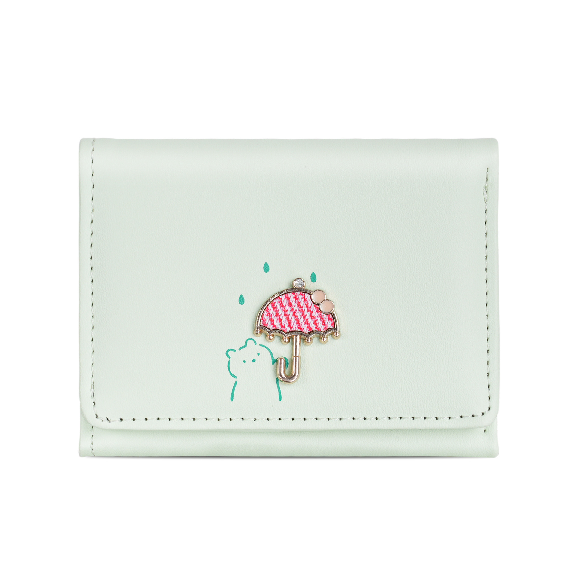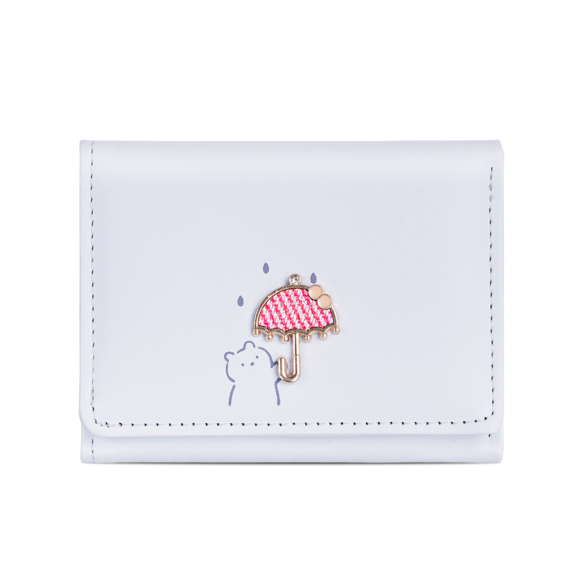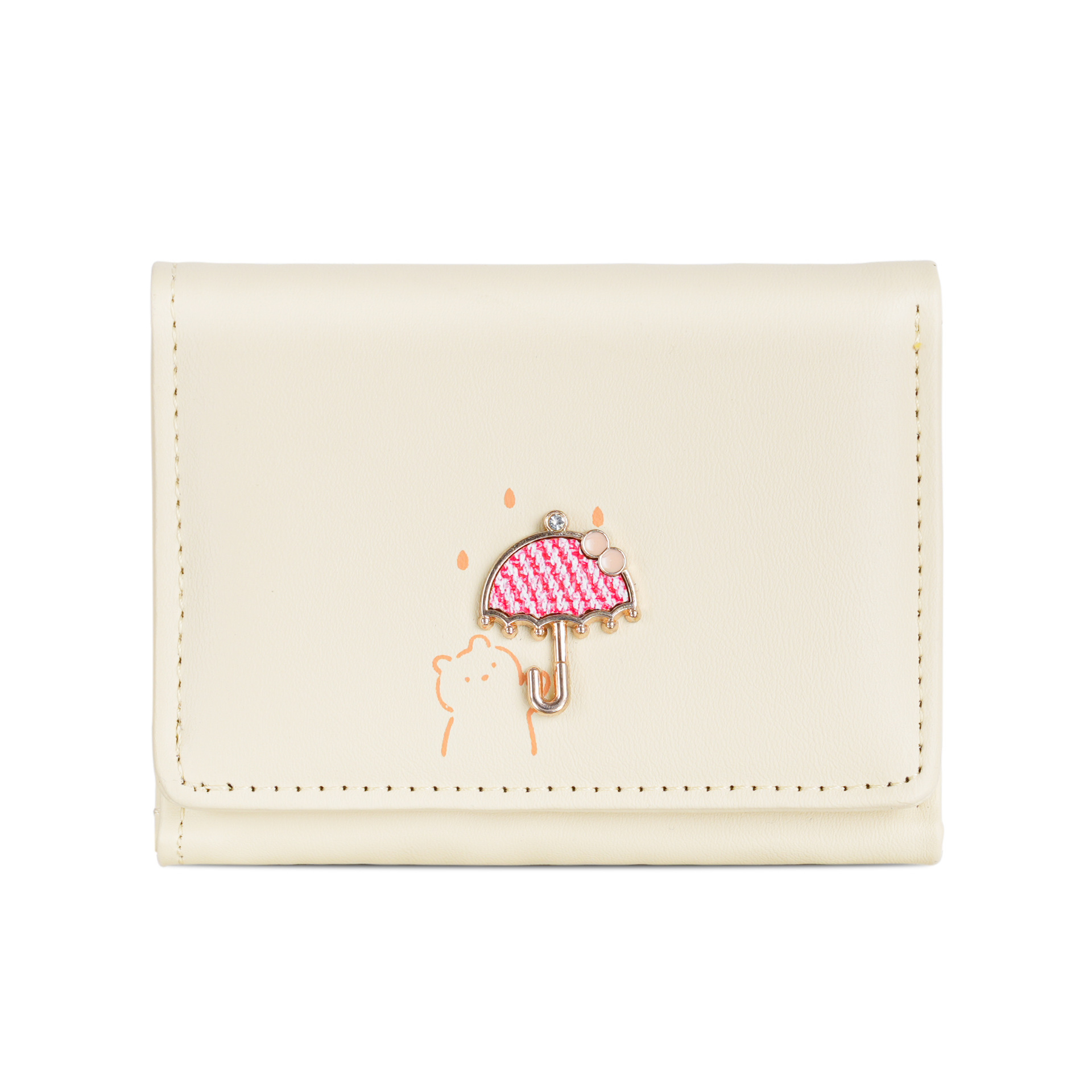 简约蝴蝶结短款女士钱包小清新可爱三折素色学生零钱夹卡包wallet