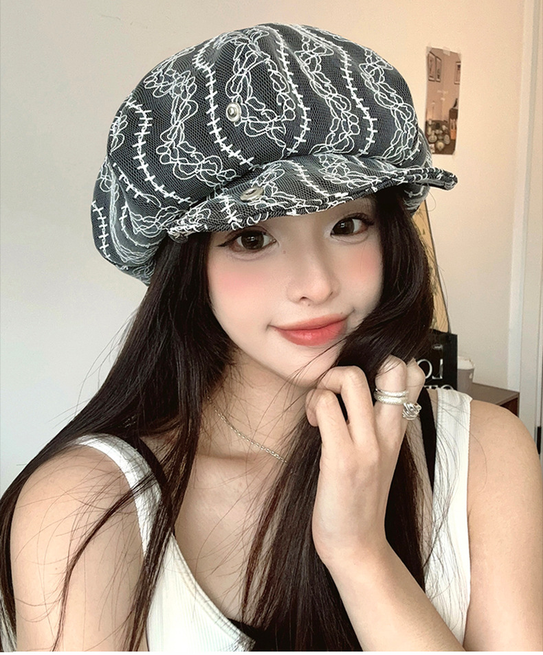 夏用の女性用レトロ刺繍ベレー帽、頭囲が大きいので顔が見える、小さくて多用途なデザインのベレー帽