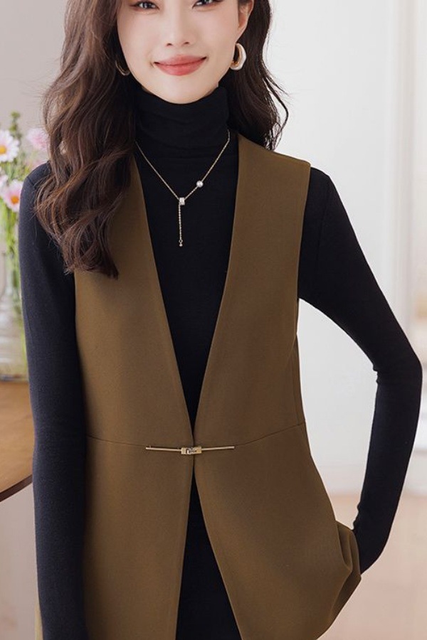 8910 ベスト女性の春と秋の新しい中国風ウールスリム多用途チョッキアウターウェアウールベストショートバックル