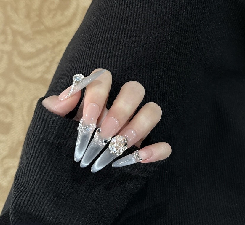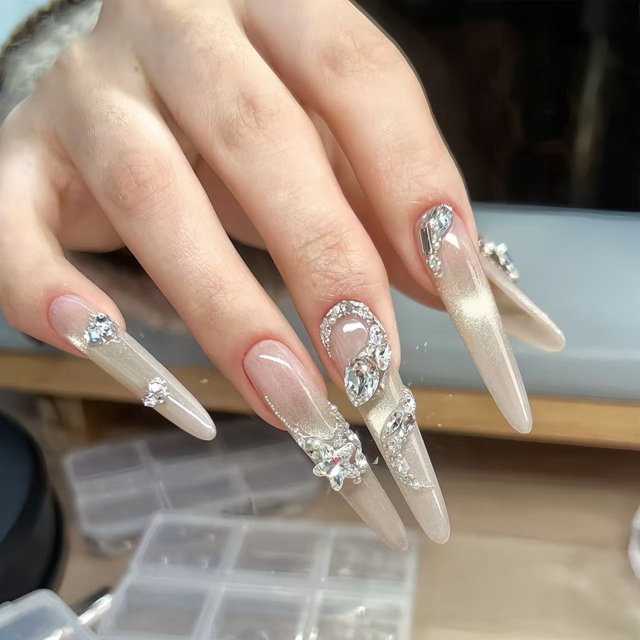 【遊園地】2025新型のきらきらした純粋な手作業で甲の手を着て、長い高級感のあるカラードリルのネイルをします。